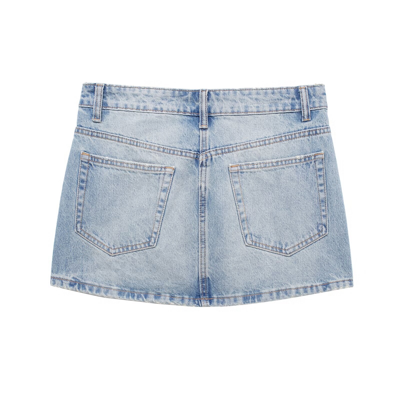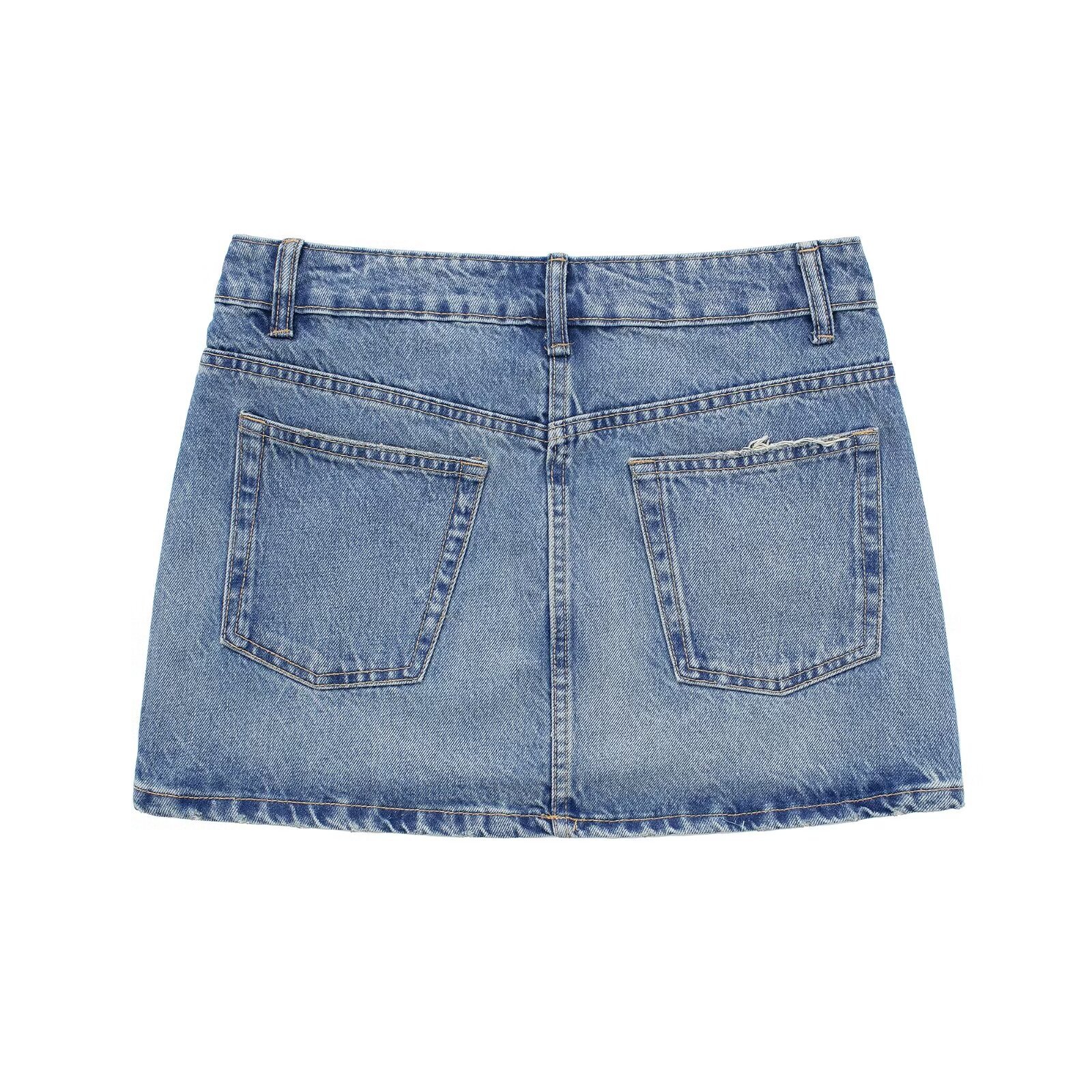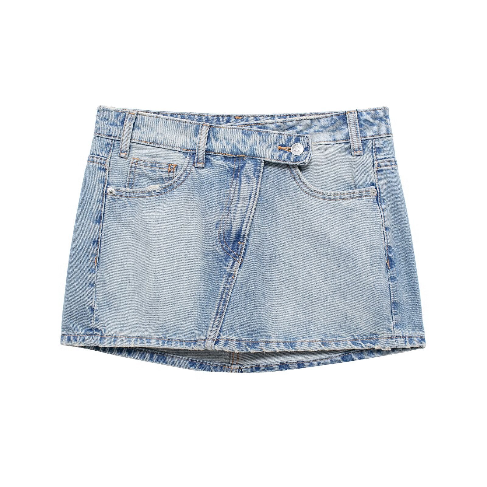 Американская горячая девушка нишевый дизайн ощущает диагональную талию мини-джинсовая юбка 2024 летом новая сексуальная тонкая юбка бедра
