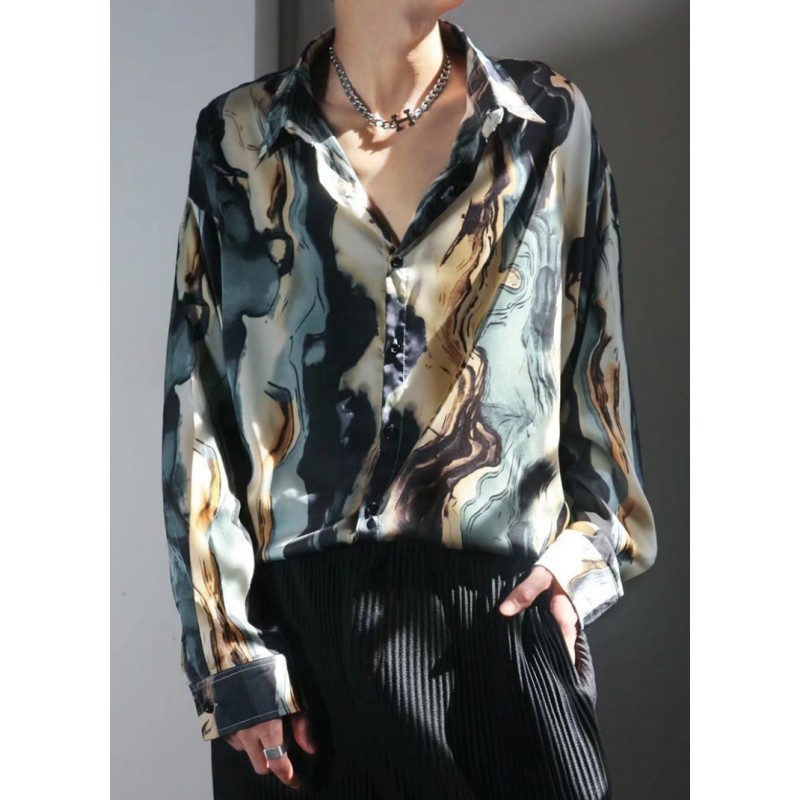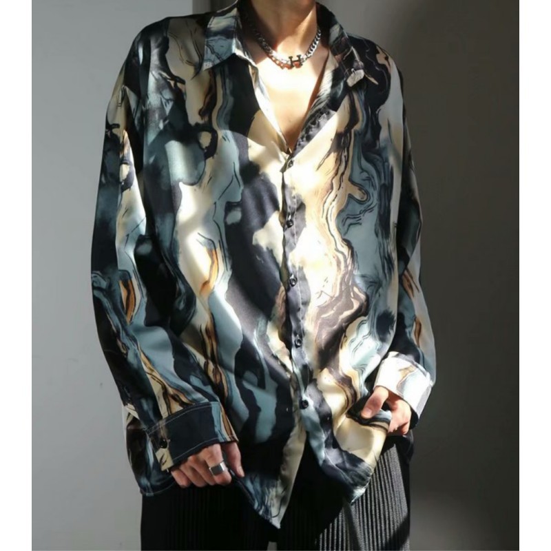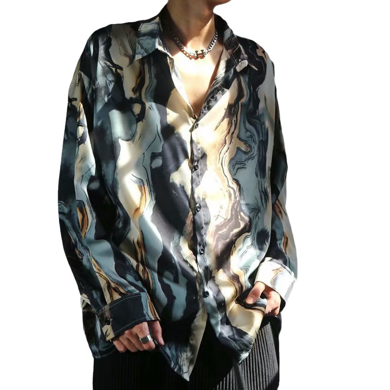 Главная страница > Мужская рубашка с длинными рукавами Высококачественный топ из ледяного шелка в гонконгском стиле с тыквой, красивый дизайн чернил, Повседневная Цветочная рубашка, куртка