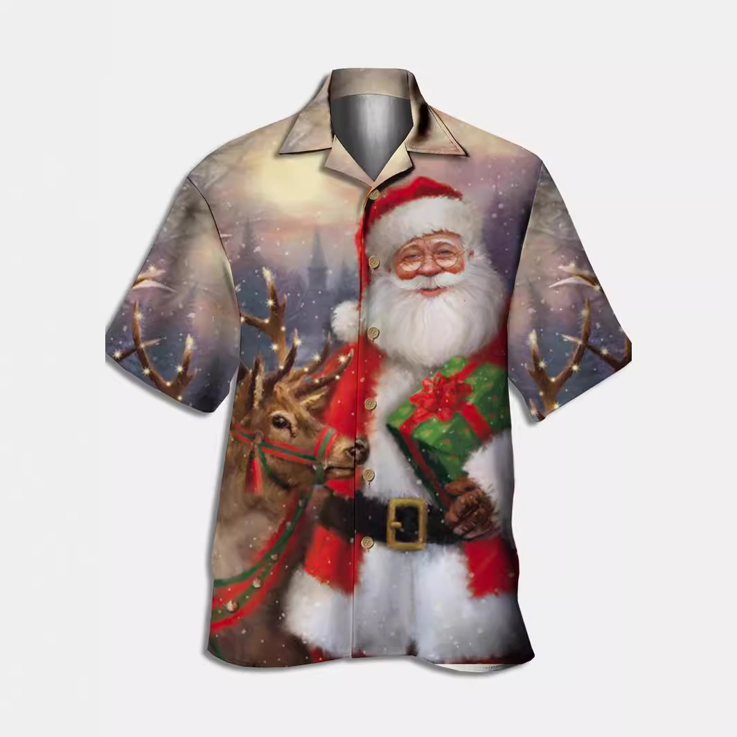 Главная страница > 2023 Рубашка с коротким рукавом Explosions 6 пряжек без карманов Рождественская серия Весенне-летняя мужская повседневная короткая рубашка с 3D-принтом
