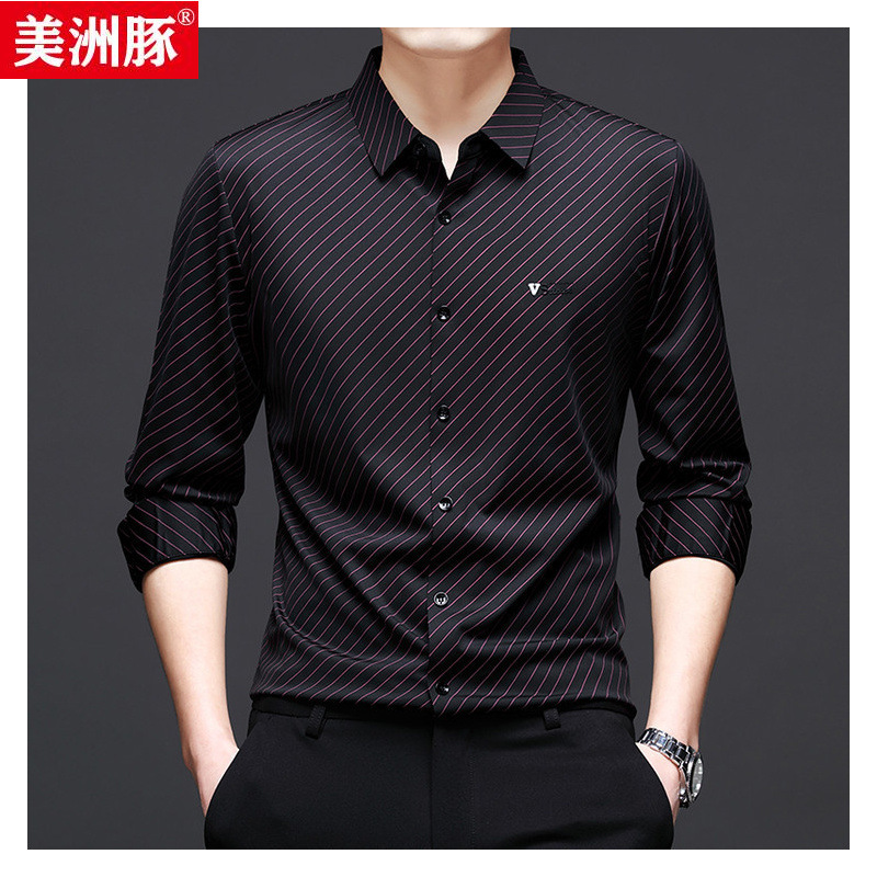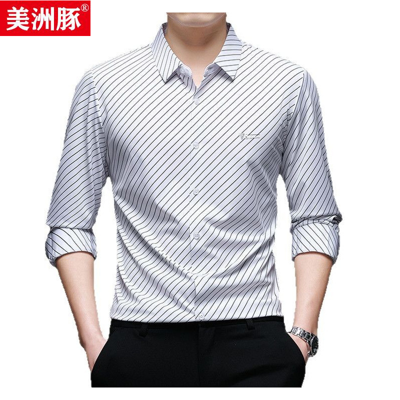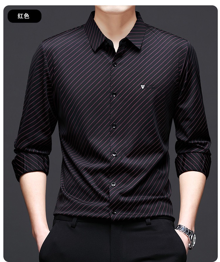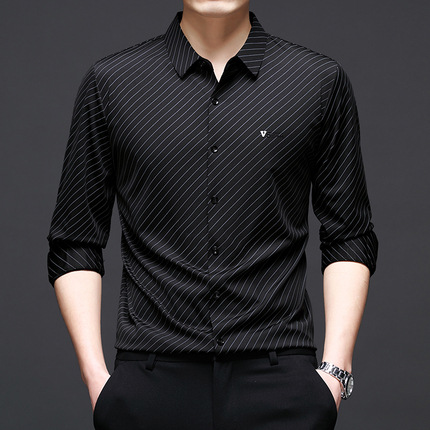 Главная страница > Высококачественная мужская рубашка мужская банда с принтом в полоску без следов рубашка мужская весна 2025 новый стиль мужская