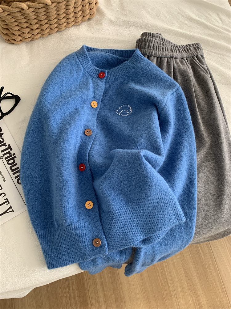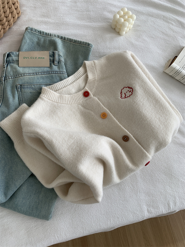 Главная страница > Нежный ретро-кардиган с вышивкой щенка, разноцветными пуговицами и круглым вырезом для женщин, осень 2025, маленький свитер-жакет
