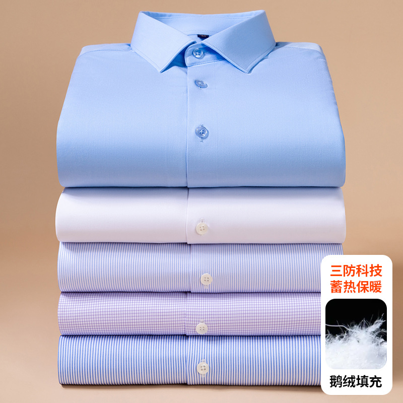 Главная страница > Зимняя теплая рубашка на гусином пуху, Мужская Утепленная деловая Повседневная рубашка с флисовой подкладкой из трех защитных тканей, не утягивающая ткань