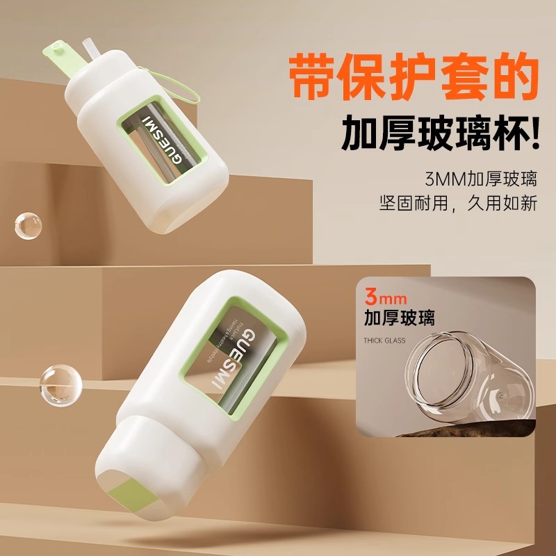 Свежая зеленая стеклянная двойная чашка емкостью 1000 мл [26 ножей-316 материал] поставляется с крышкой чашки для воды.