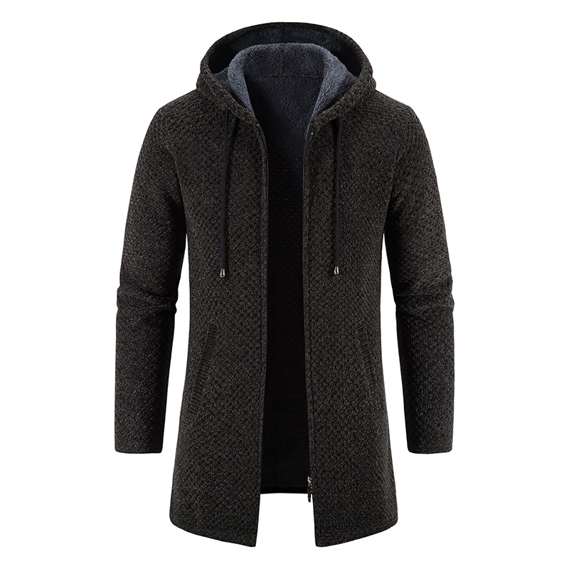 Главная страница > Мужской зимний кардиган-свитер 2025 года, утепленный флисом, средней длины, крупного размера, повседневный, с капюшоном
