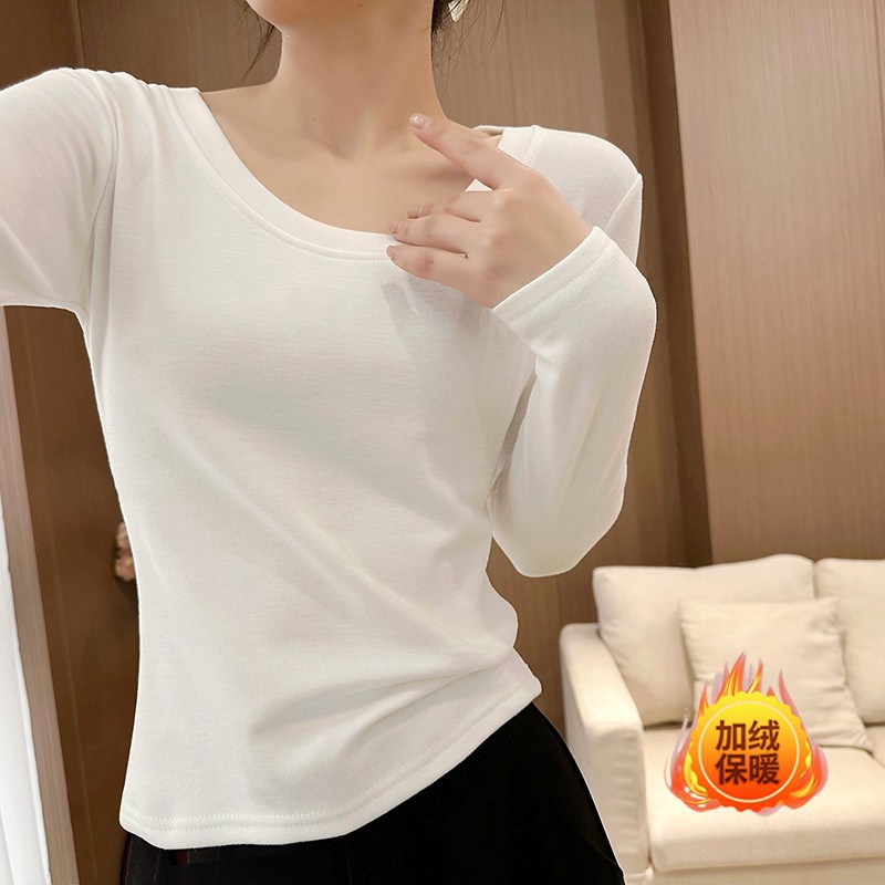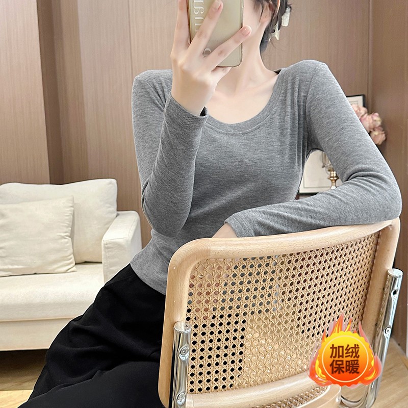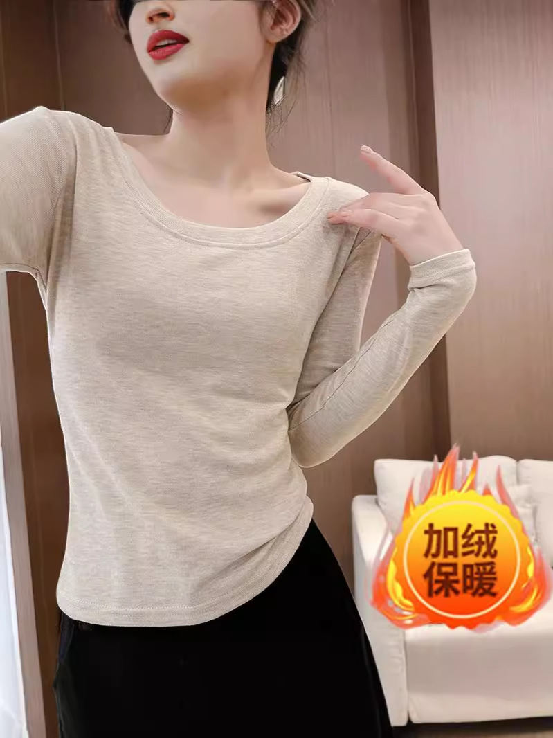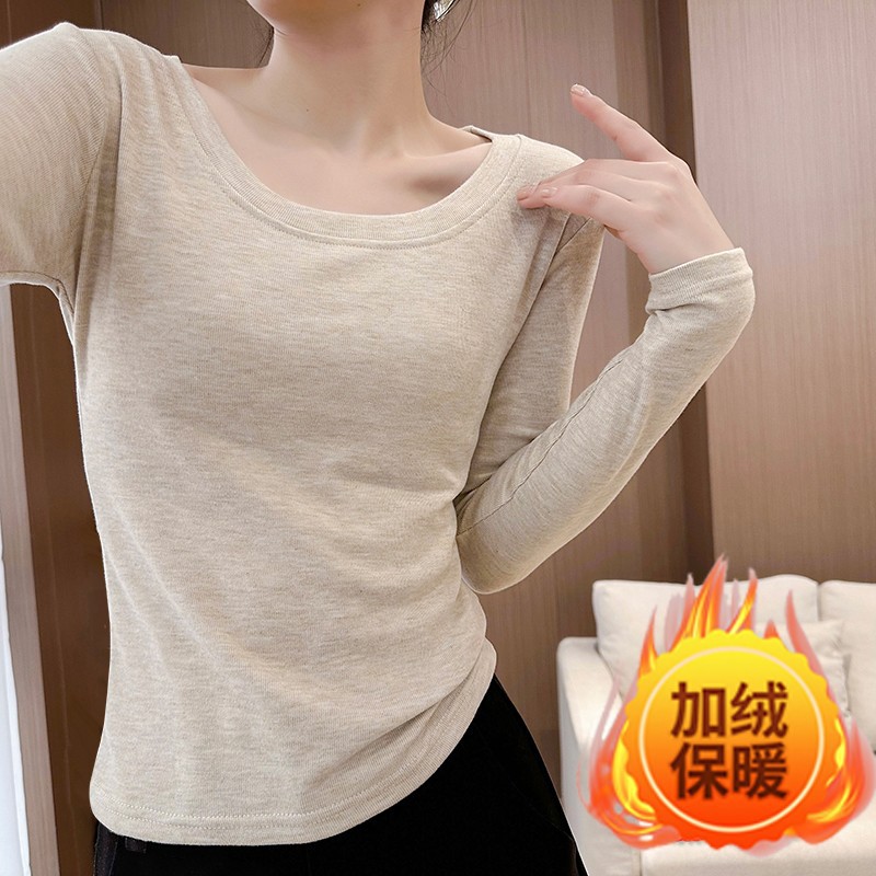 Главная страница > U-образный воротник с плюшевым плечом, толстая футболка с длинными рукавами, женская футболка осень-зима