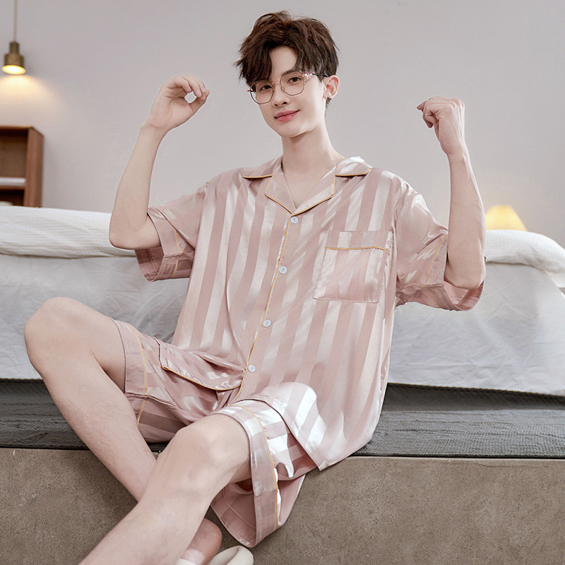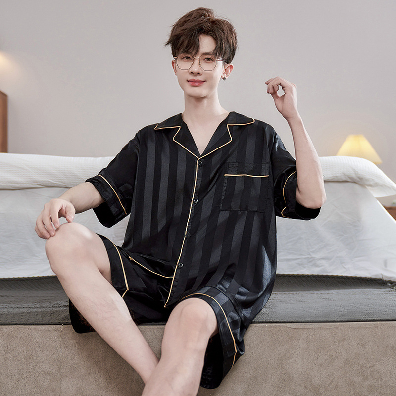 Главная страница > Мужская пижама с короткими рукавами размера плюс 100kg летние, летние шорты в клетку с отложным воротником, ледяной шелк для полных мужчин, мужская домашняя одежда 125kg года.