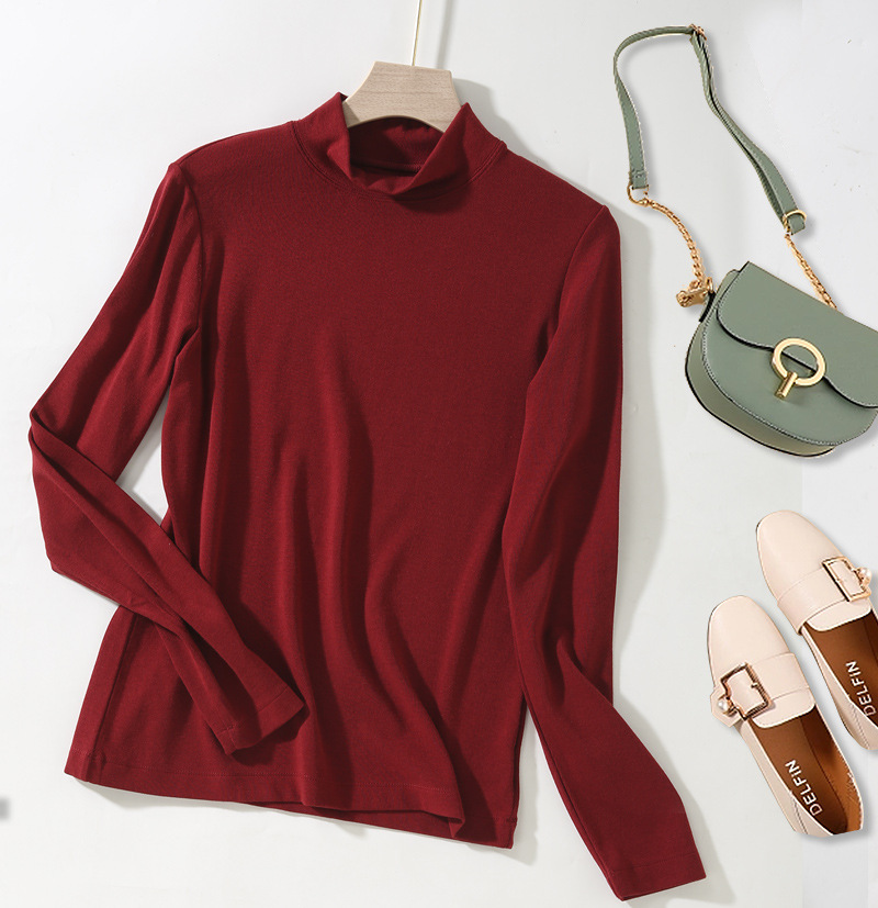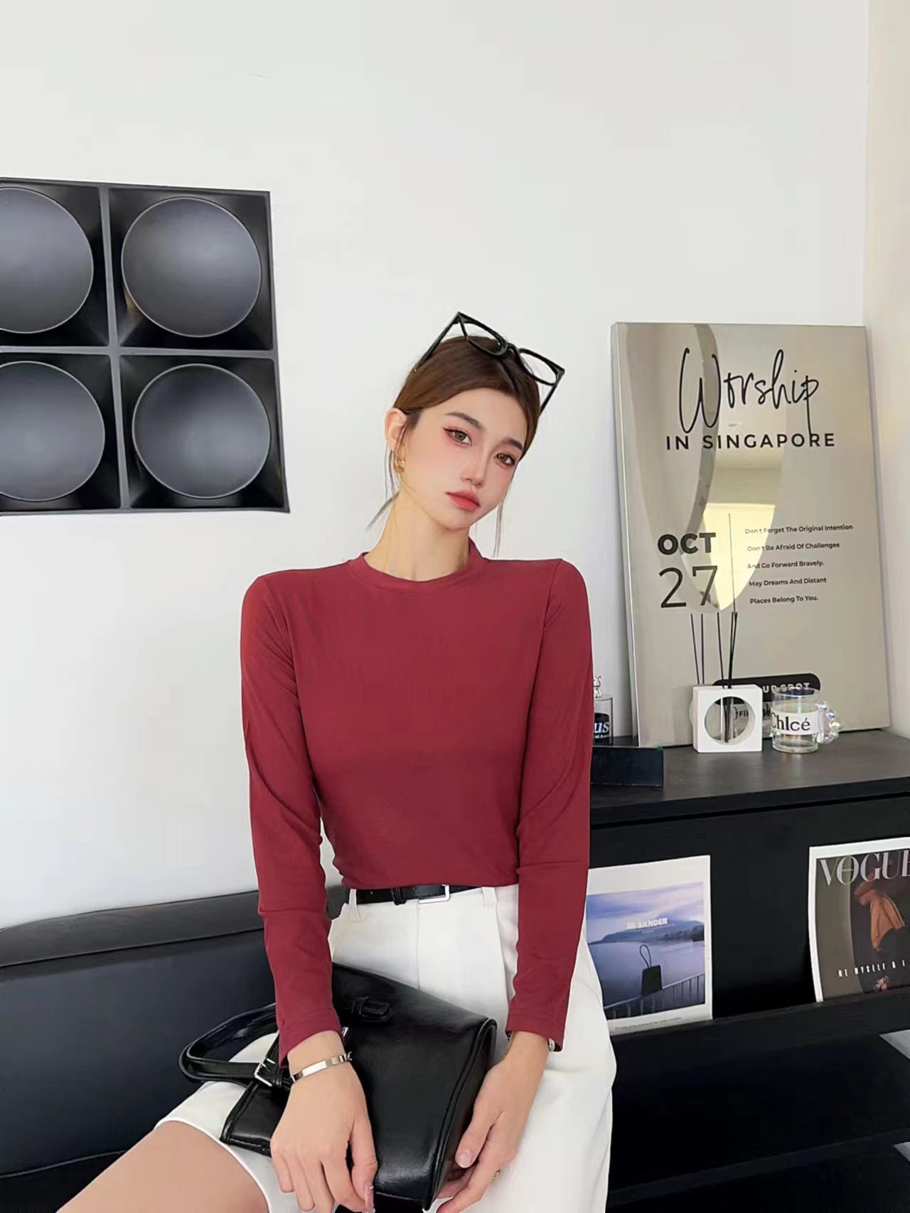 Модальный высокоэластичный бордовый цвет с круглым вырезом и длинными рукавами