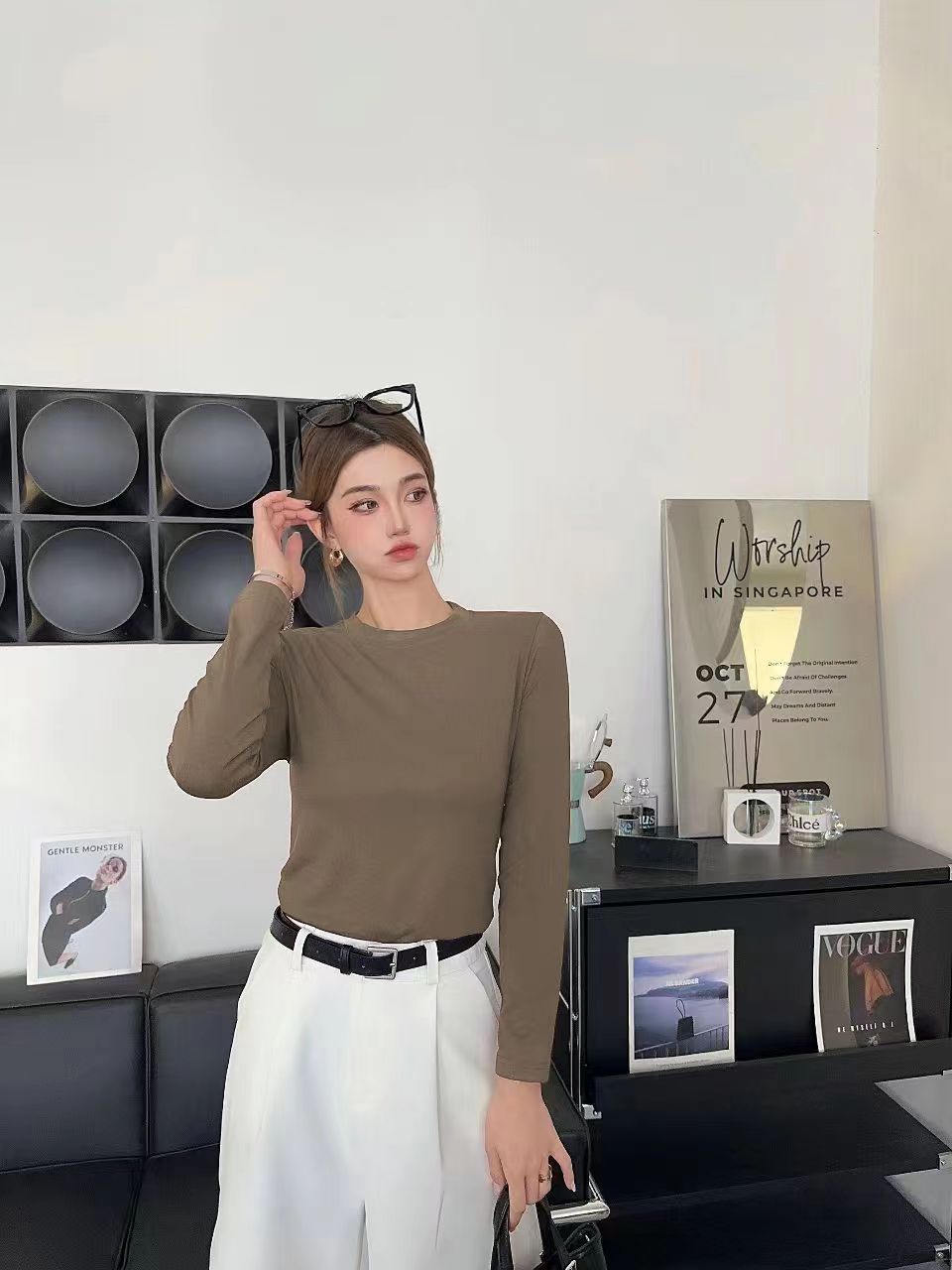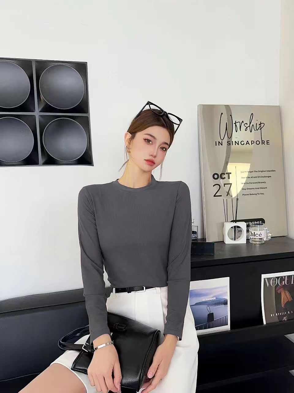 Модальный высокоэластичный круглый вырез с длинным рукавом, высококачественный серый цвет