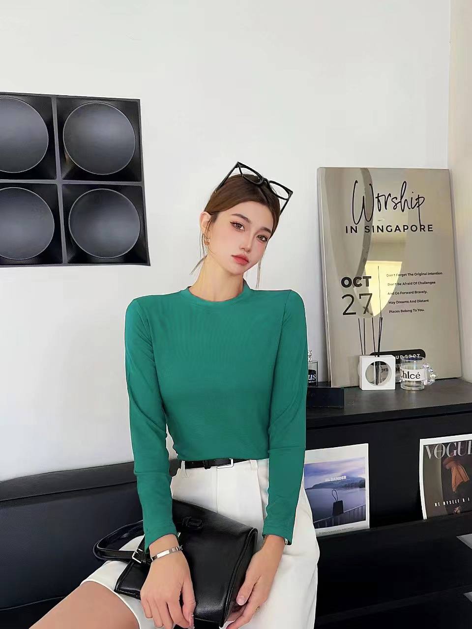 Модальный высокоэластичный круглый вырез с длинными рукавами, древесно-зеленый