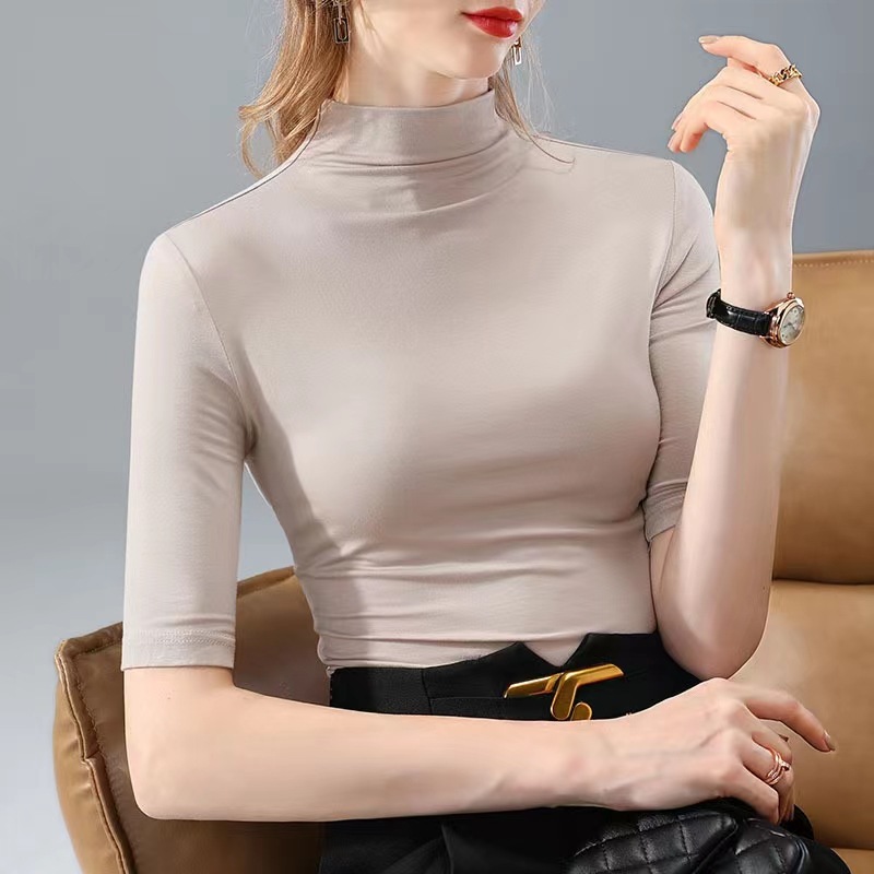 Главная страница > Женская футболка из ребристого хлопка с воротником-стойкой, однотонная, эластичная, с вариантами длинных и коротких рукавов, облегающая, базовая модель, осенний топ.