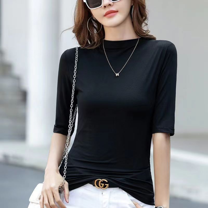 Модальный высокоэластичный черный цвет с круглым вырезом и короткими рукавами
