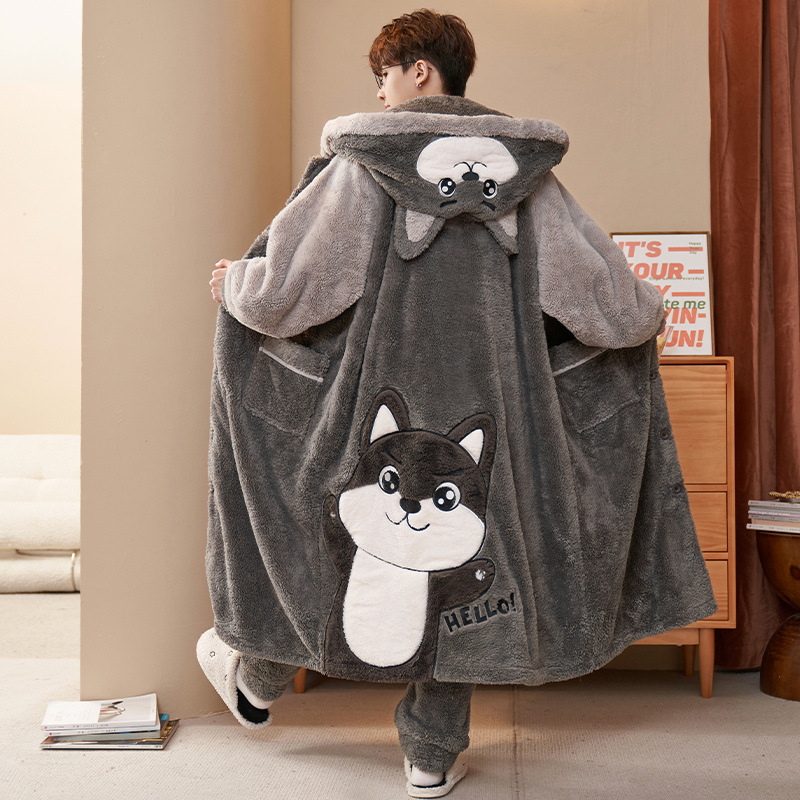 Главная страница > Мужская пижама молодежная зимняя толстая коралловая бархатная длинная ночная одежда большой размер 200 кг жирный домашний костюм