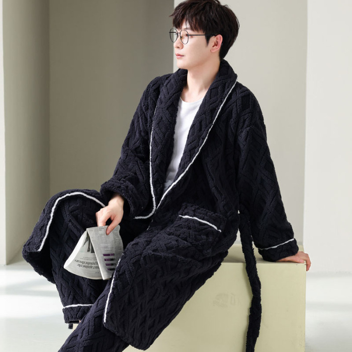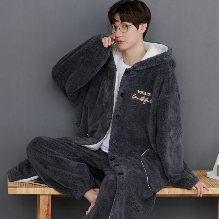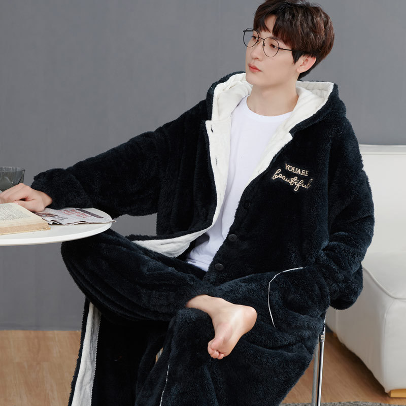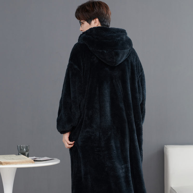 300 кг халат с капюшоном мужской зимой утолщенный и бархатный корейский длинный коралловый бархат на молнии
