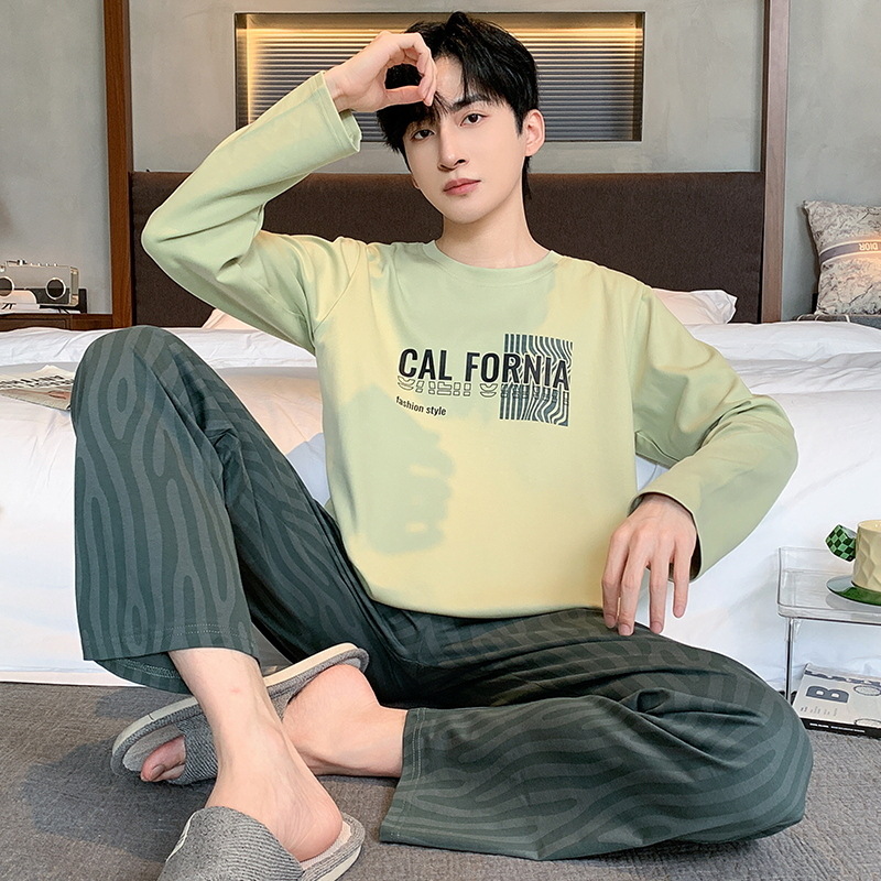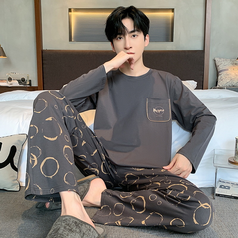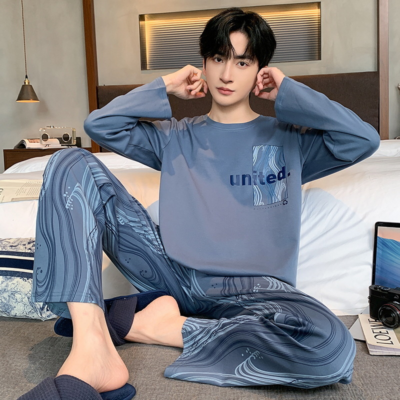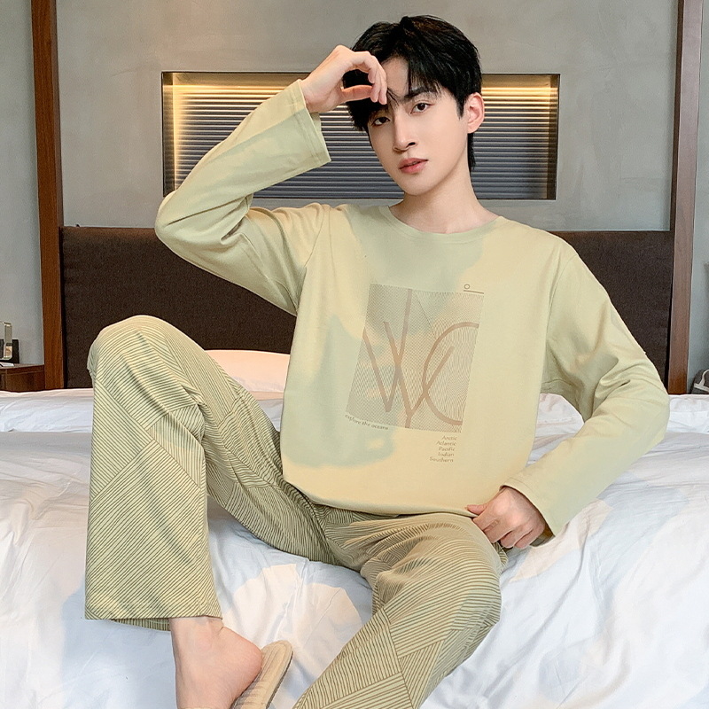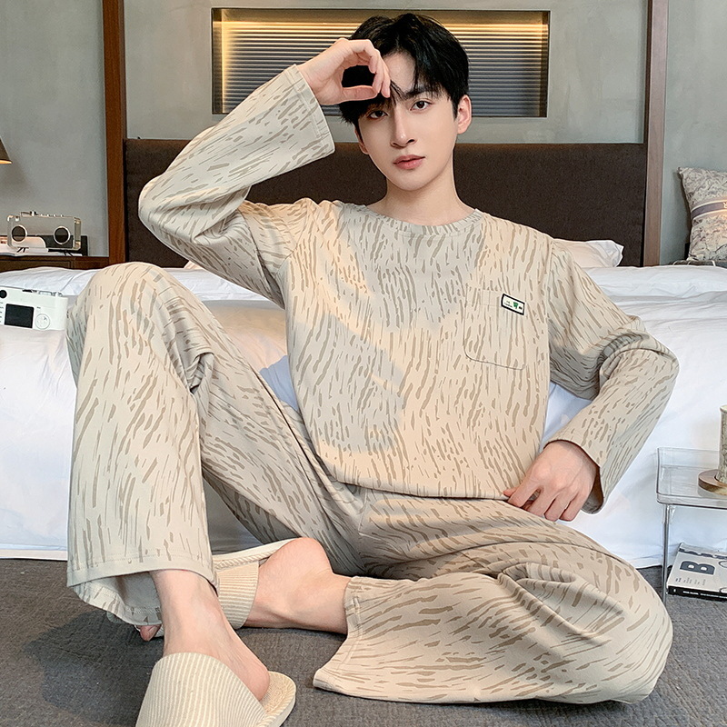 Главная страница > Весенние и осенние хлопчатобумажные пижамы мужские брюки с круглым вырезом и длинными рукавами повседневные можно носить на улице