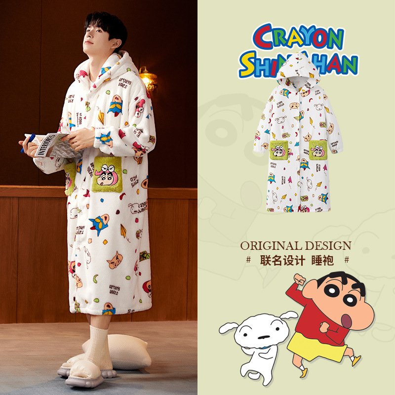 Runma [тип хранения тепла] мелок маленькая новая Пижама для пар Женская осенне-зимняя ночная рубашка из кораллового флиса на флисовой подкладке мужская одежда