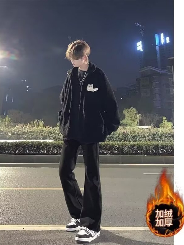 Главная страница > Мужские американские бархатные джинсы Мужская осень-зима 2024 новый стиль High Street Weala черные прямые повседневные брюки Мужская одежда