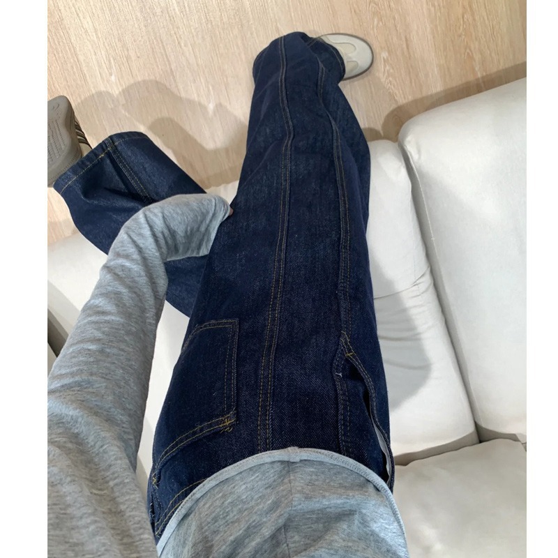 Темно-синие прямые джинсы женские осенние новые толстые сестры мм грушевидное тело с высокой талией свободные тонкие широкие брюки
