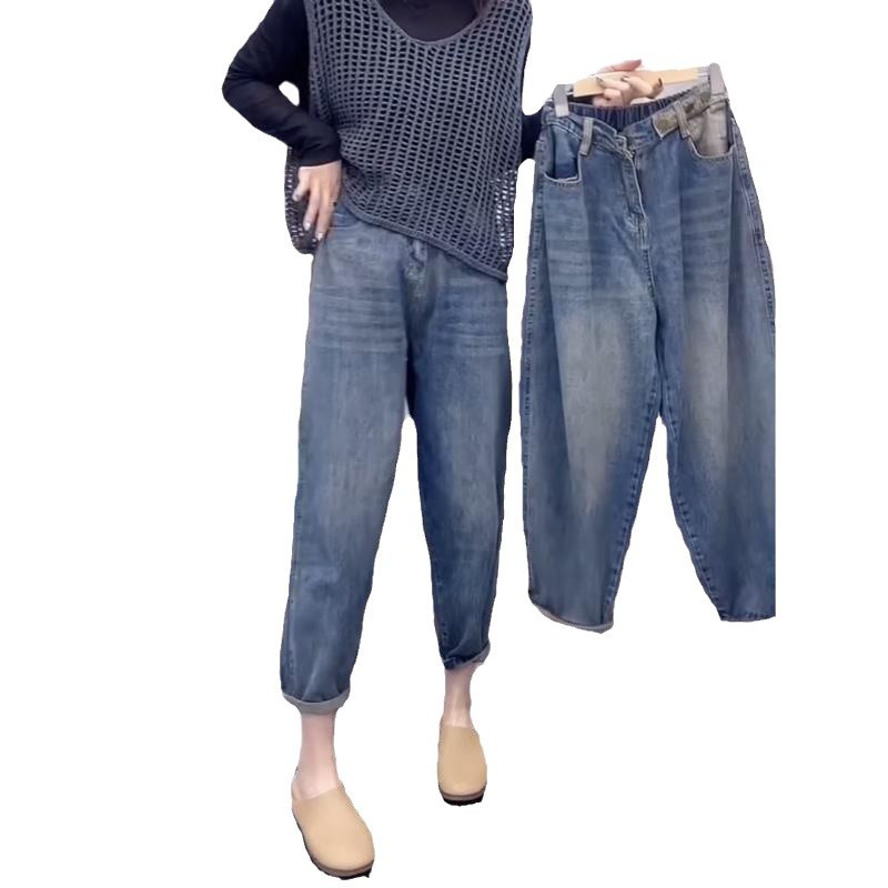Главная страница > Большой размер грушевидное тело джинсы женский 2025 новый толстый MM с высокой талией тонкая девятибалетные штаны
