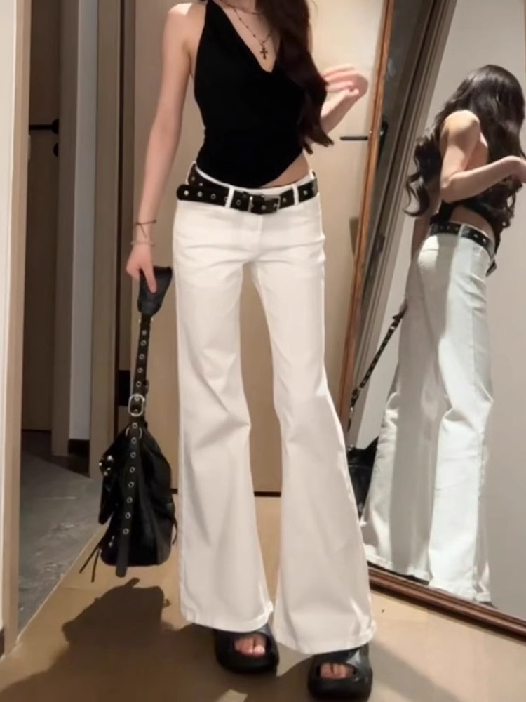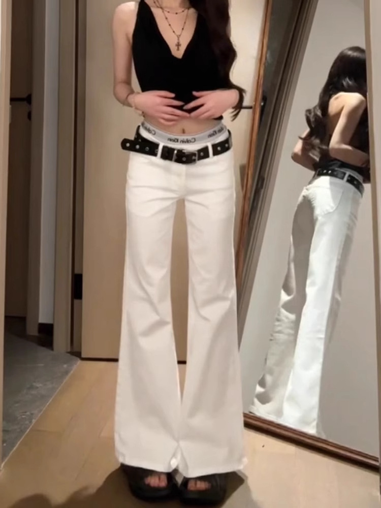 Главная страница > Белые расклешенные джинсы для женщин 2025 осень низкая посадка утягивающие свободные в пол широкие слегка расклешенные длинные брюки