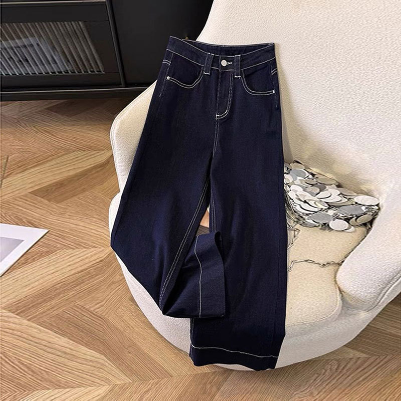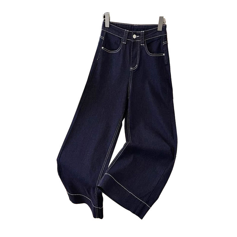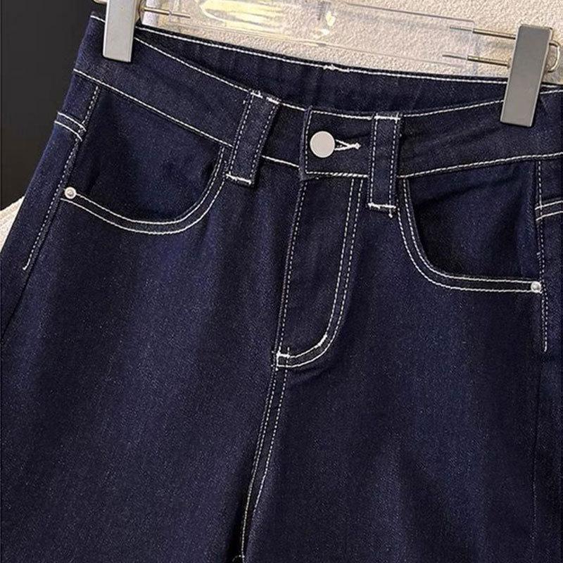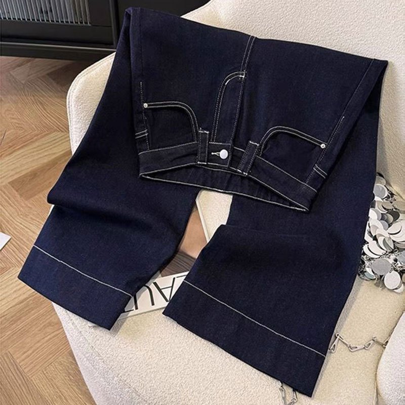 Главная страница > Джинсы для женщин, весенне-летние новые темно-синие широкие брюки большого размера в стиле ретро для полных мм, свободные прямые брюки с высокой талией, девять точек