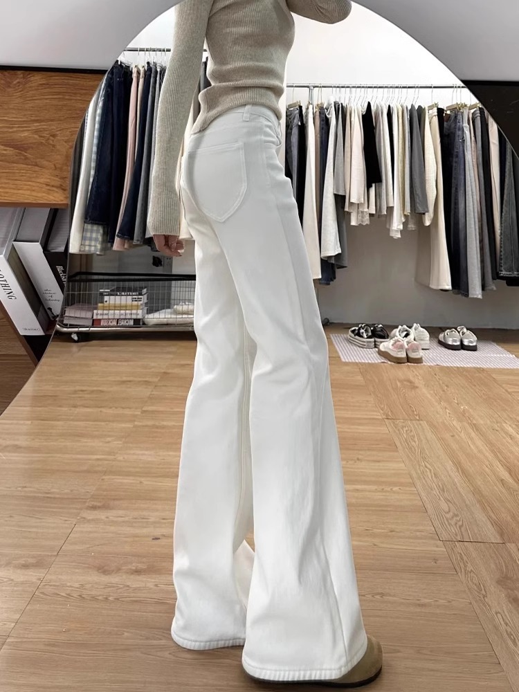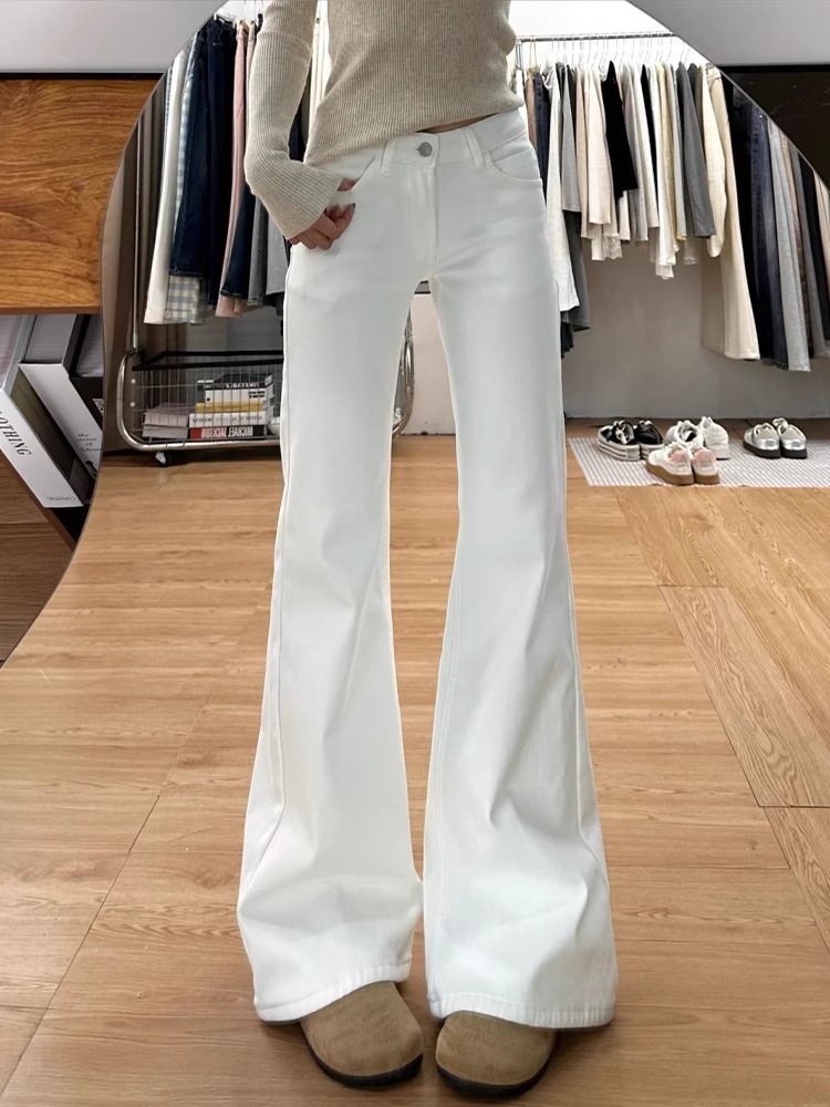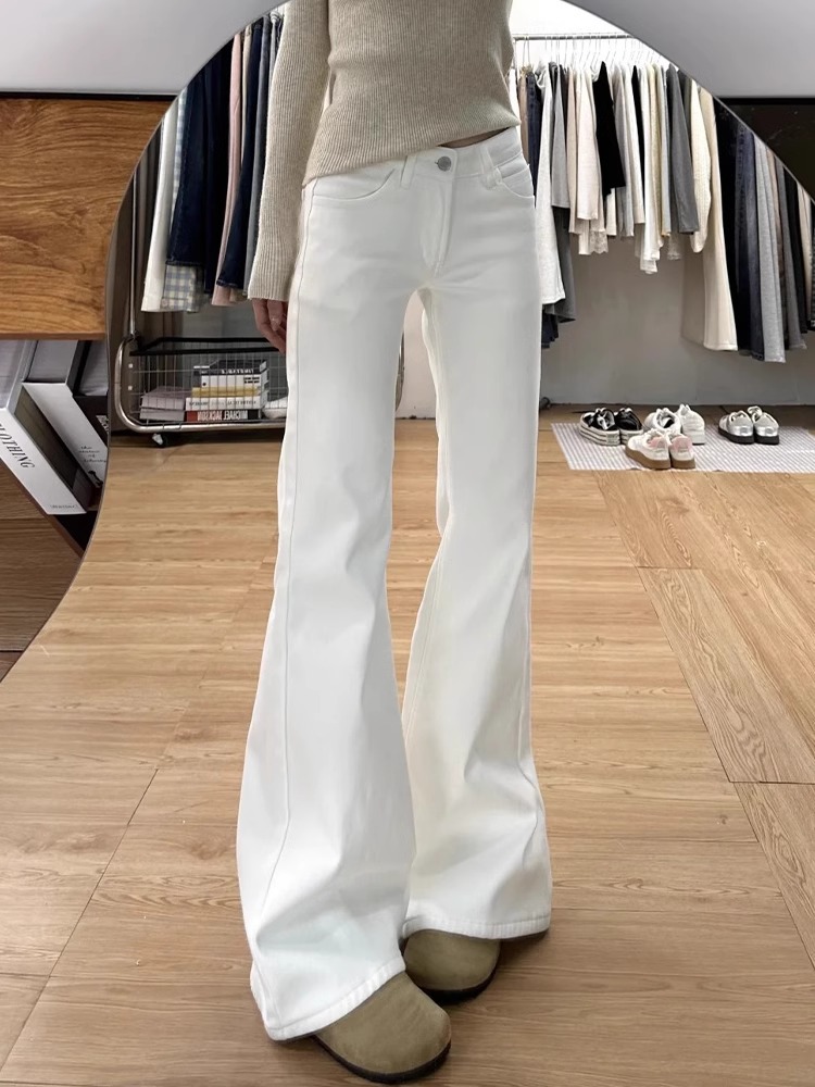 Главная страница > Осенние белые расклешенные джинсы для женщин, стройнящие, не обтягивающие прямые расклешенные брюки, свободные брюки с высокой талией для женщин, осенний стиль