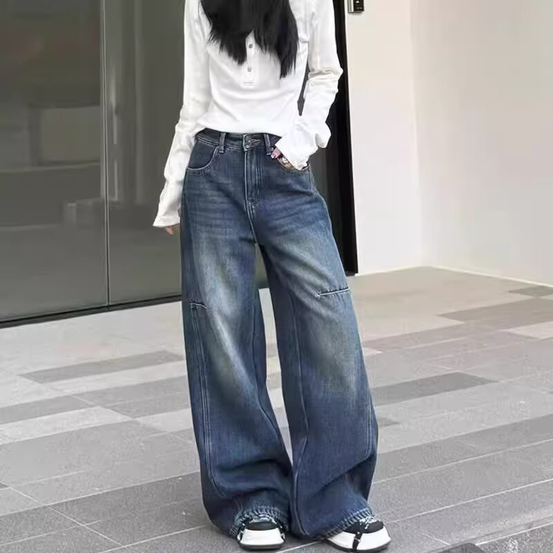 Главная страница > Ретро прямые джинсы женские толстые миллиметровые американские брюки с широкими ножками свободного размера