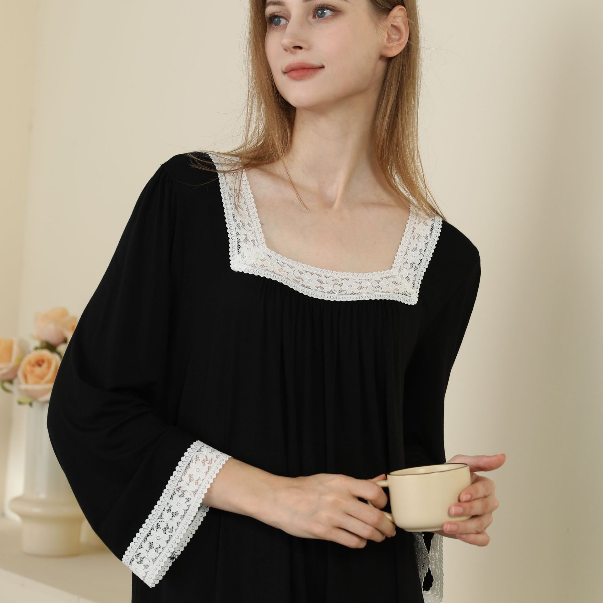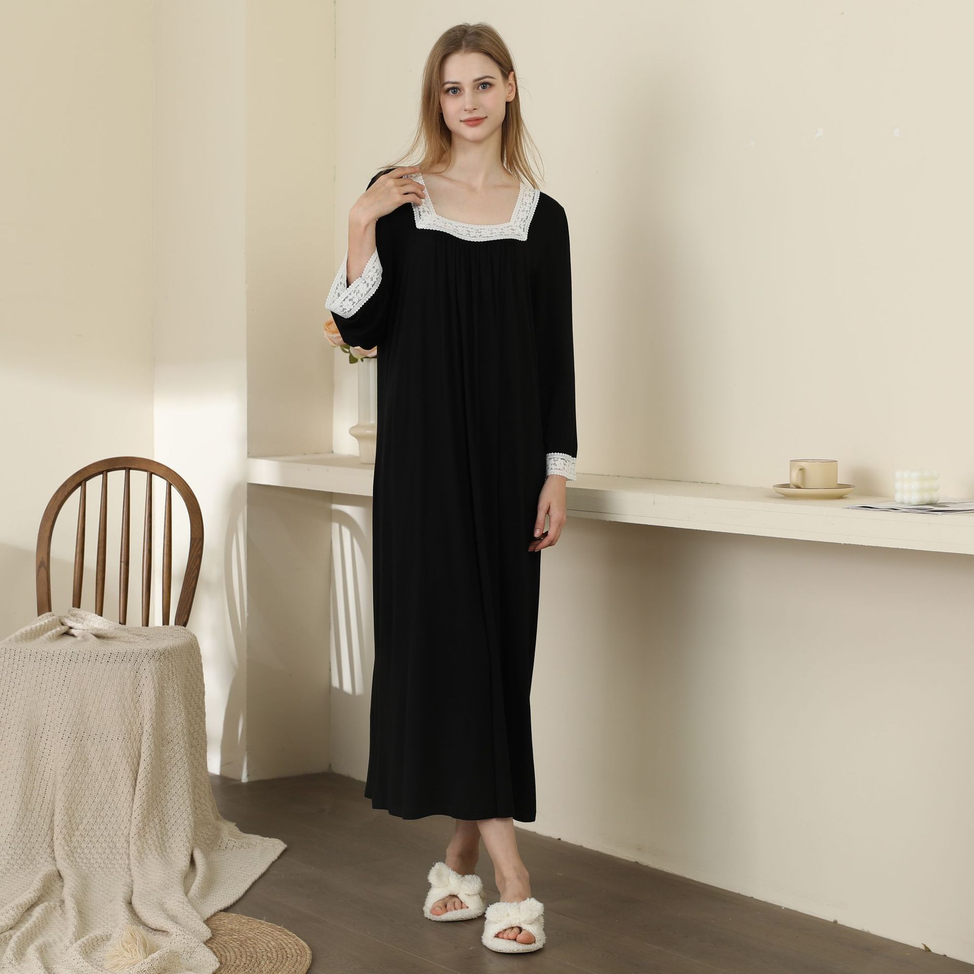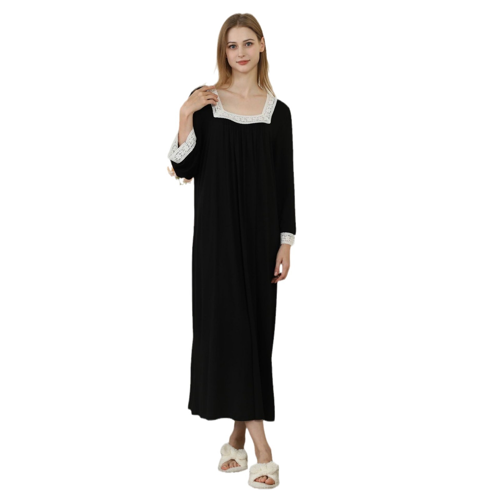 Главная страница > Новые женские пижамы на осень и зиму, однотонные, простой стиль, кружевной воротник, ночная рубашка с длинными рукавами, сексуальная домашняя одежда из модала.
