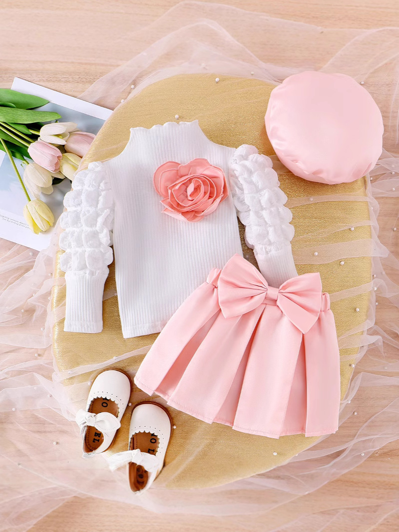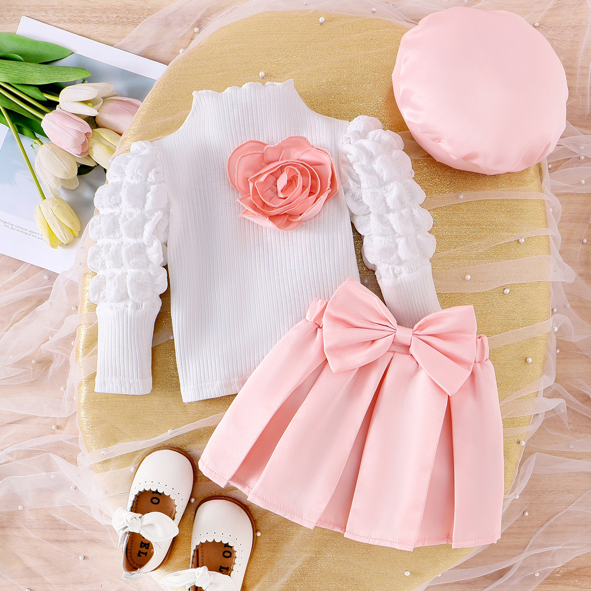 Главная страница > Европейский и американский новый весенний и осенний набор девочек с пузырьками рукава с высоким воротником и длинным рукавом с бантиком плиссированная юбка шляпа из трех частей