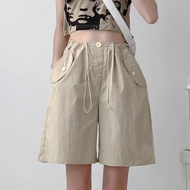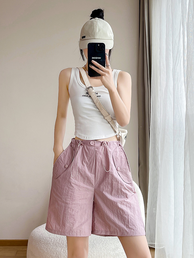Главная страница > Розовые шорты-карго для женской верхней одежды, летние свободные тонкие быстросохнущие спортивные брюки, повседневные широкие брюки с высокой талией