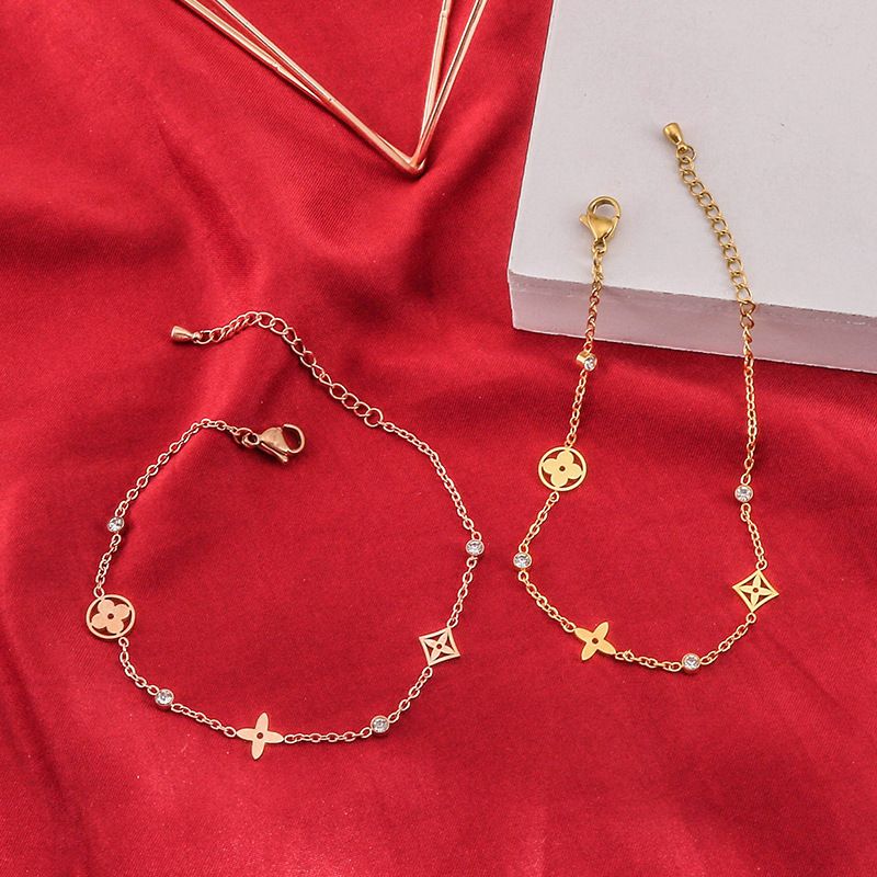 Главная страница > Множество вырезанных браслетов с четырехлистными цветами для женщин, покрытых розовым золотом 18 карат, простые аксессуары из титановой стали в корейском стиле, которые не выцветают.