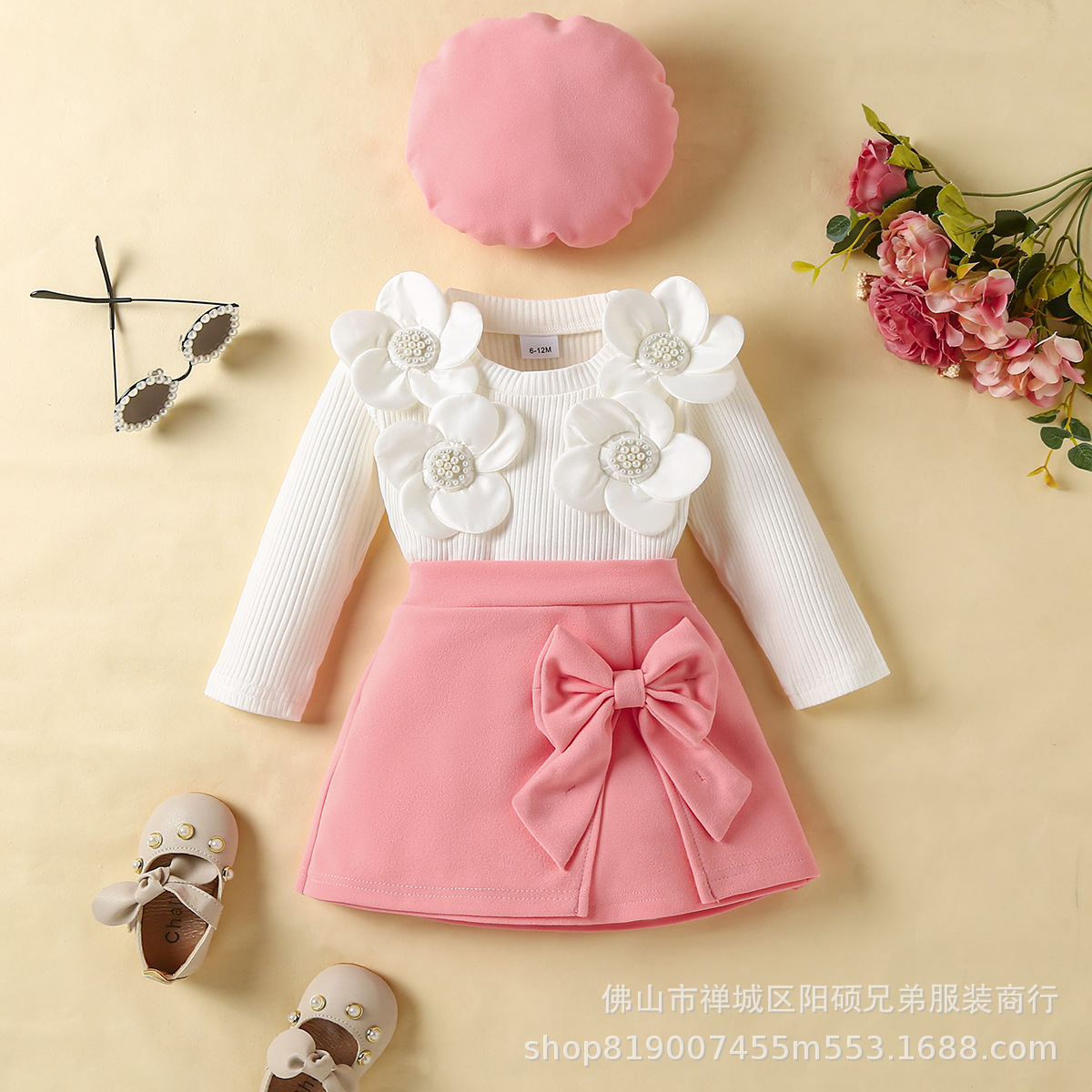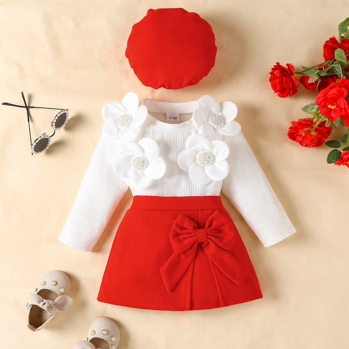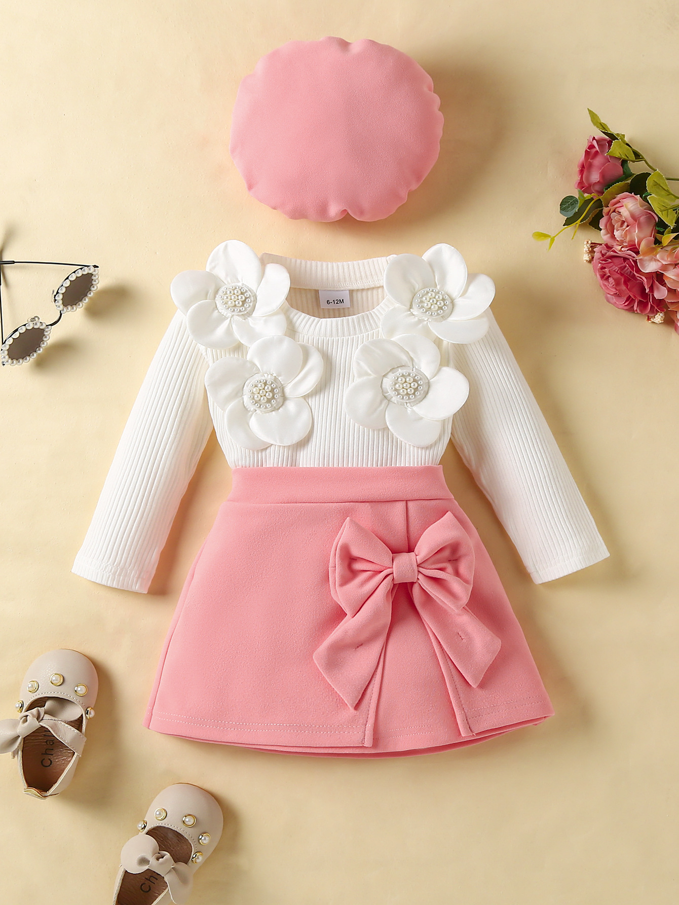 Детский костюм для малышей 0-3 лет (осень-зима): кофта с длинным рукавом, юбка с бантом и шапочка (3 предмета)