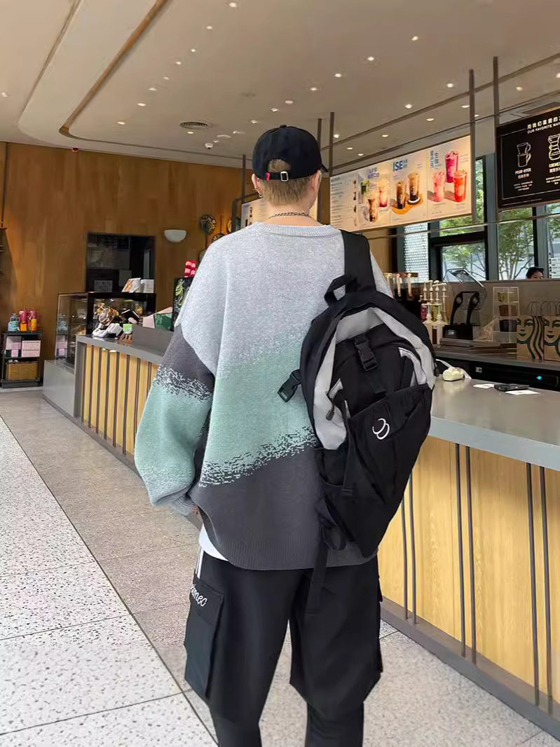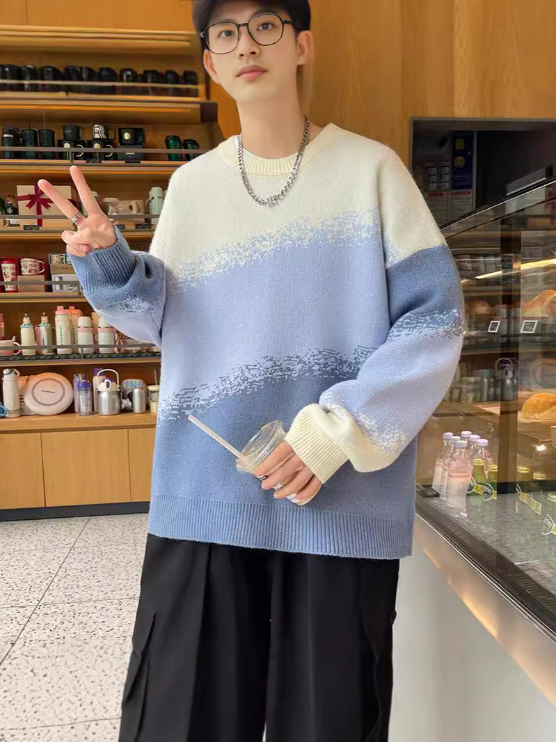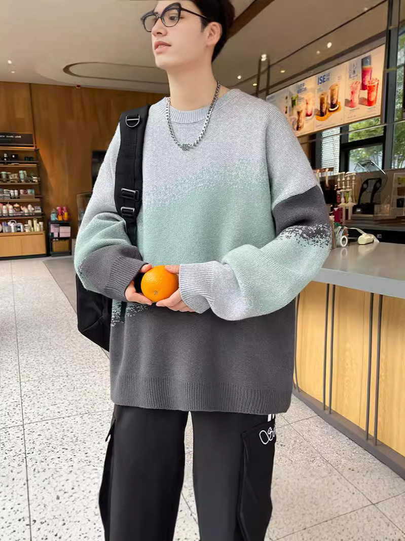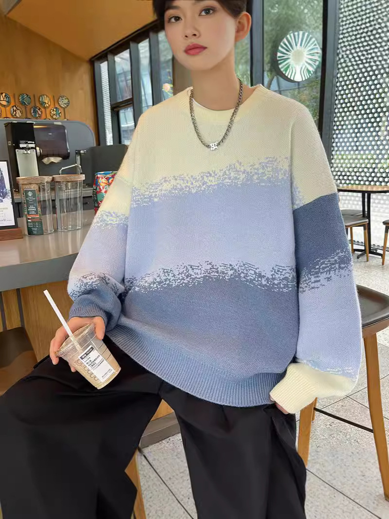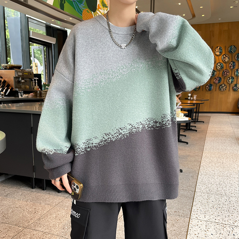 Главная страница > Гонконгский ветер с градиентным изменением цвета свитер с круглым вырезом мужской свободный ленивый ветер
