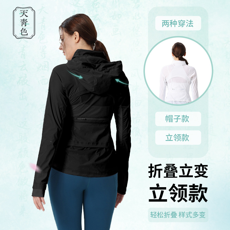 Главная страница > Небо голубой lulugoal Тонкий солнцезащитный крем Женская шляпа может получить воротник куртка прохладный быстрый сухой Йога куртка