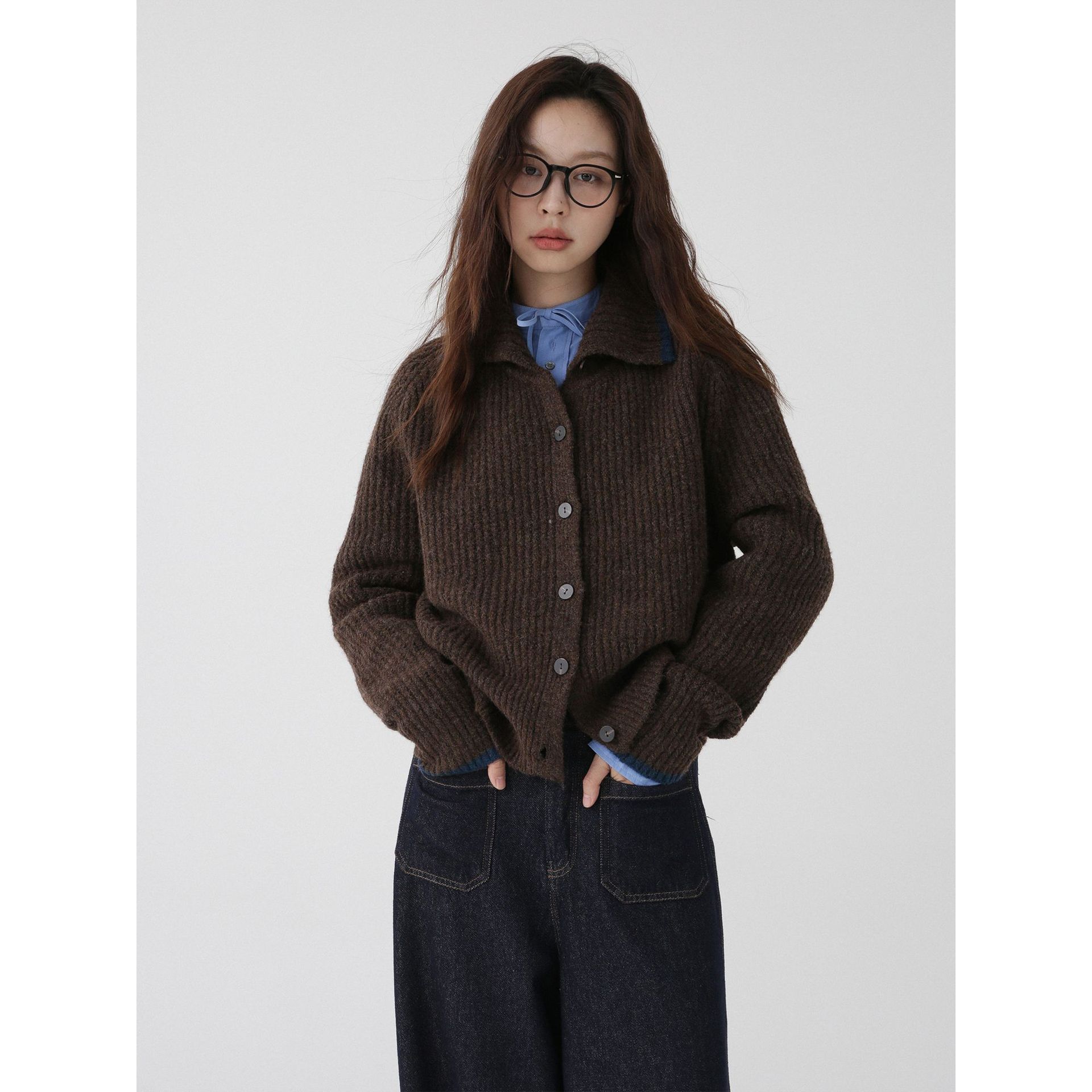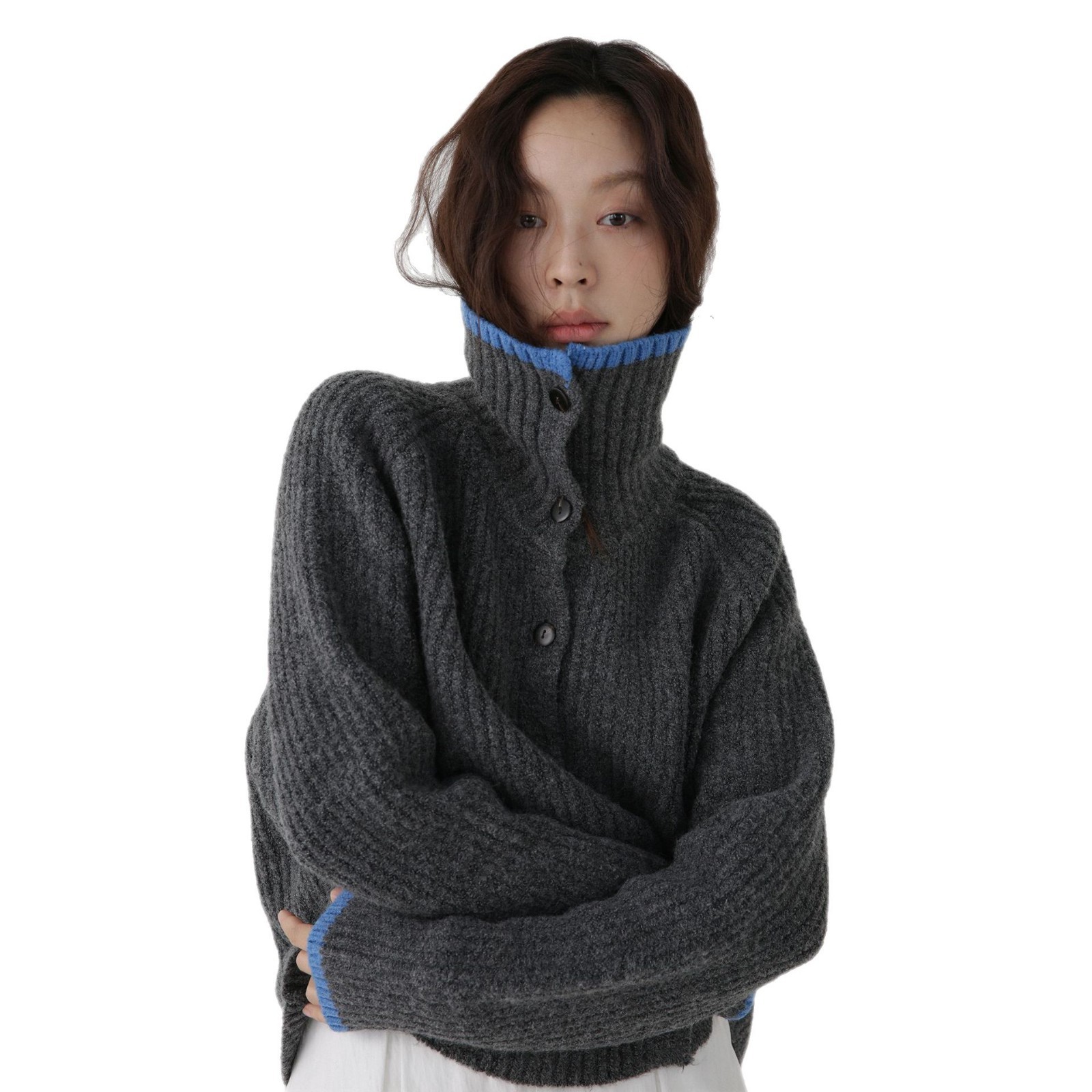Главная страница > 【Шерсть овцы】Корейский стиль, лениво-шик, серый вязаный кардиган с контрастным воротником, свитер для женщин, осенне-зимняя верхняя одежда.