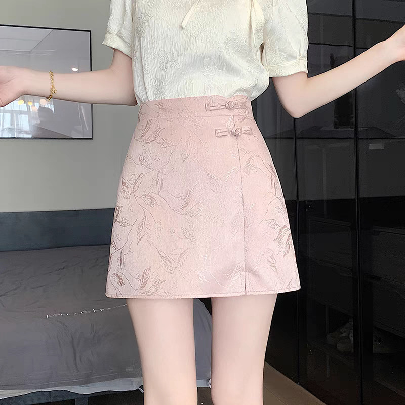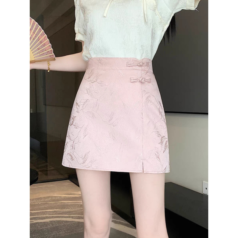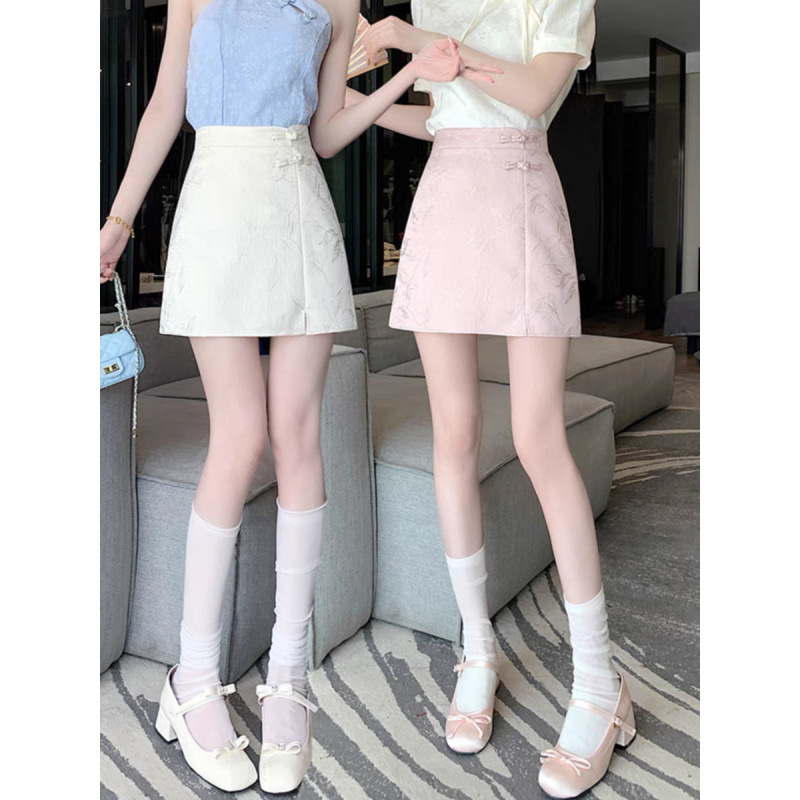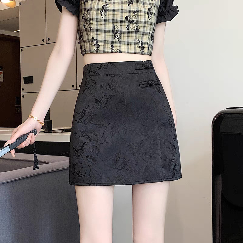 Главная страница > Новый китайский стиль национальный стиль пуговицы жаккардовая юбка женская летняя новая супер фея с открытым вилкой, сплошной цвет, тонкая юбка