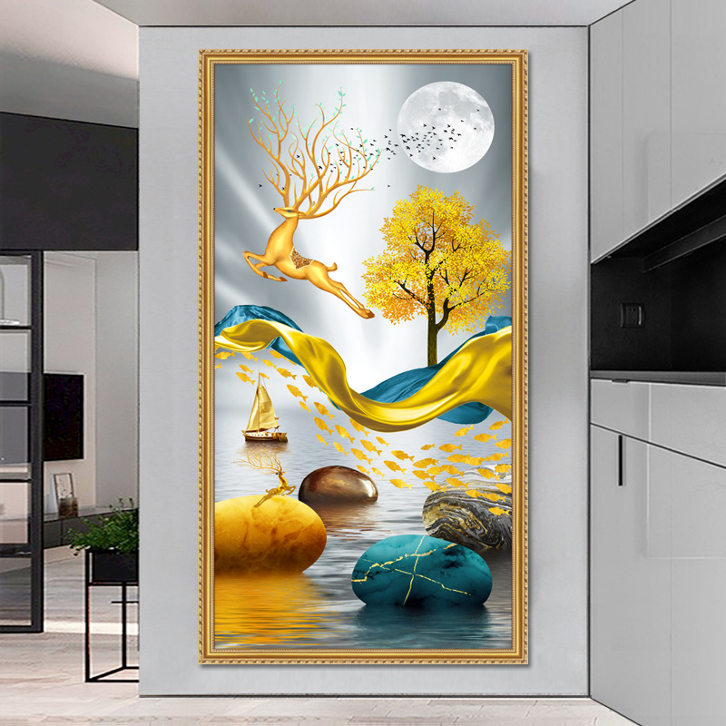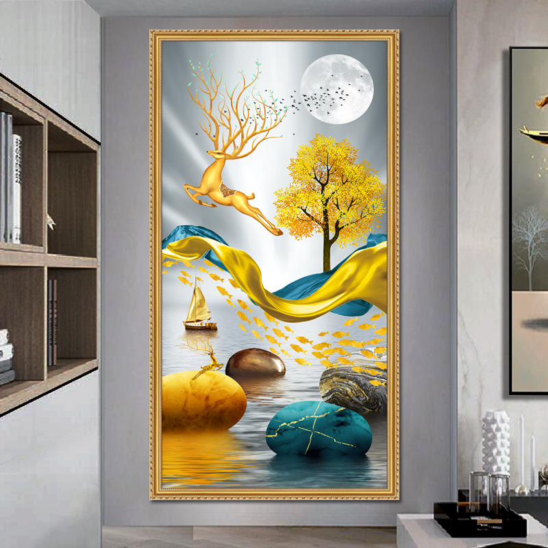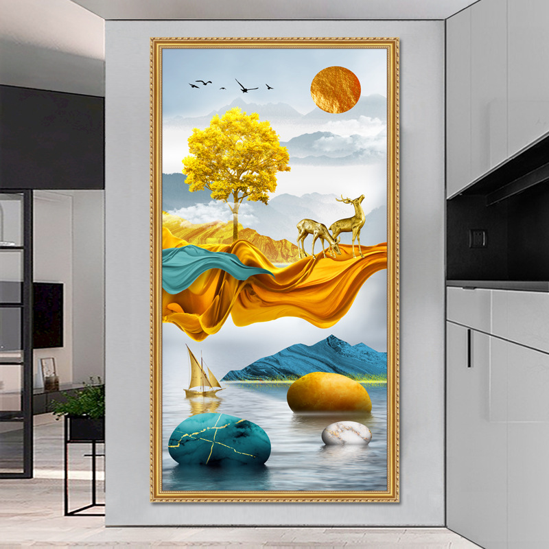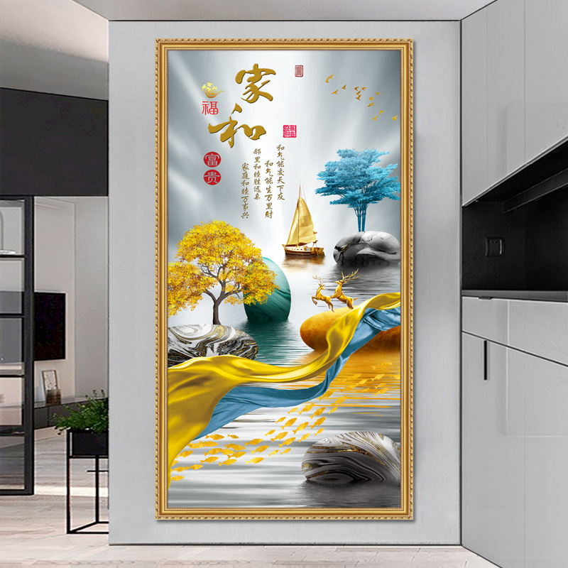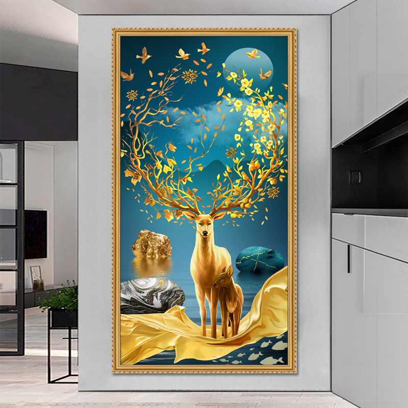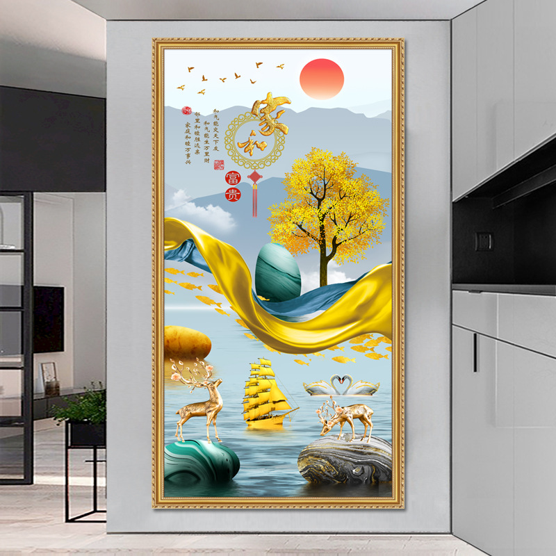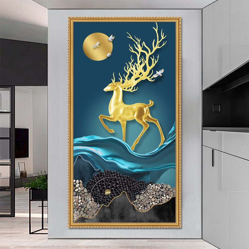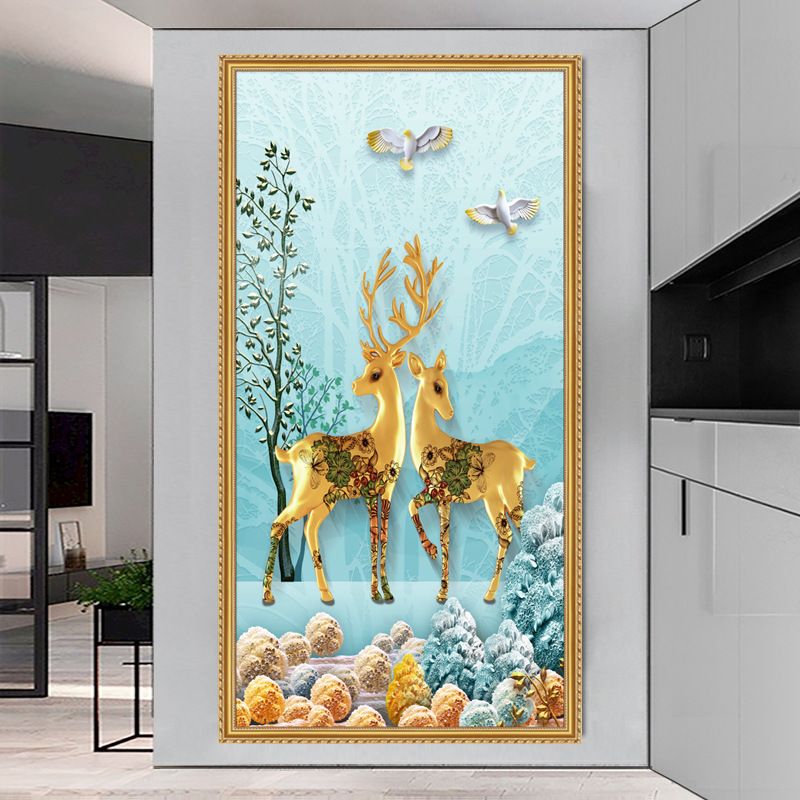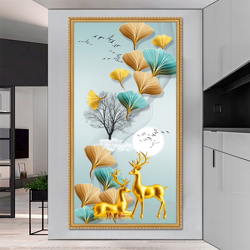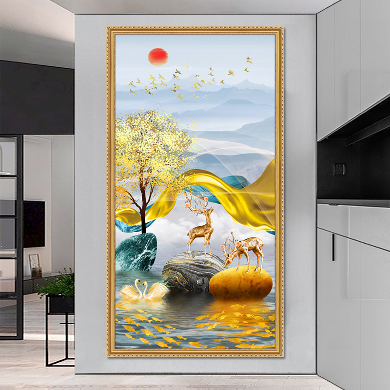 Главная страница > Легкий экстравагантный ветер декоративная роспись современного минималистского коридора вертикальная фреска абстрактная атмосферная гостиная проход лося висит роспись