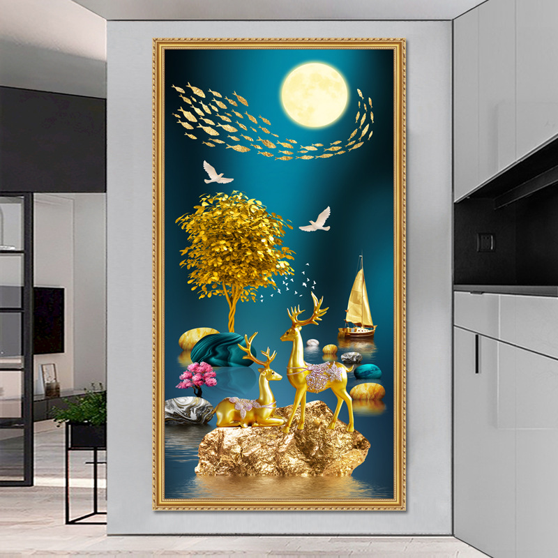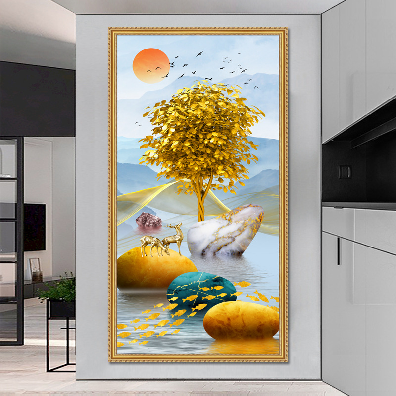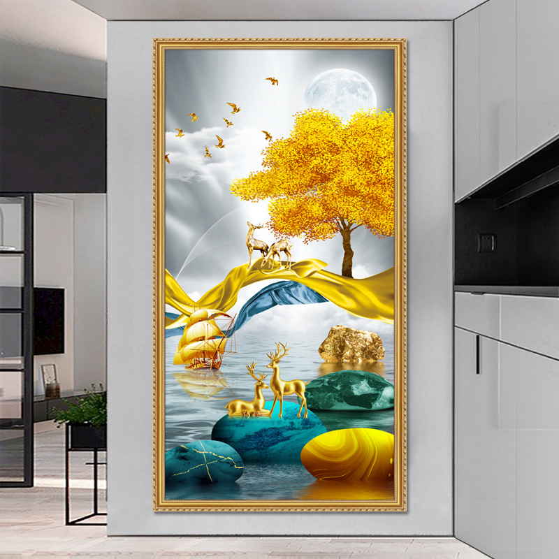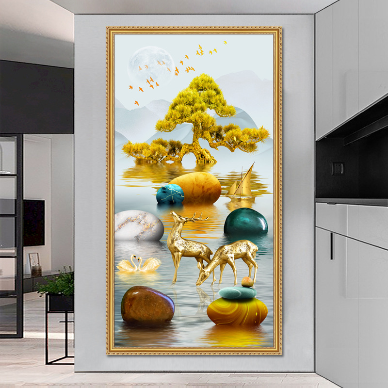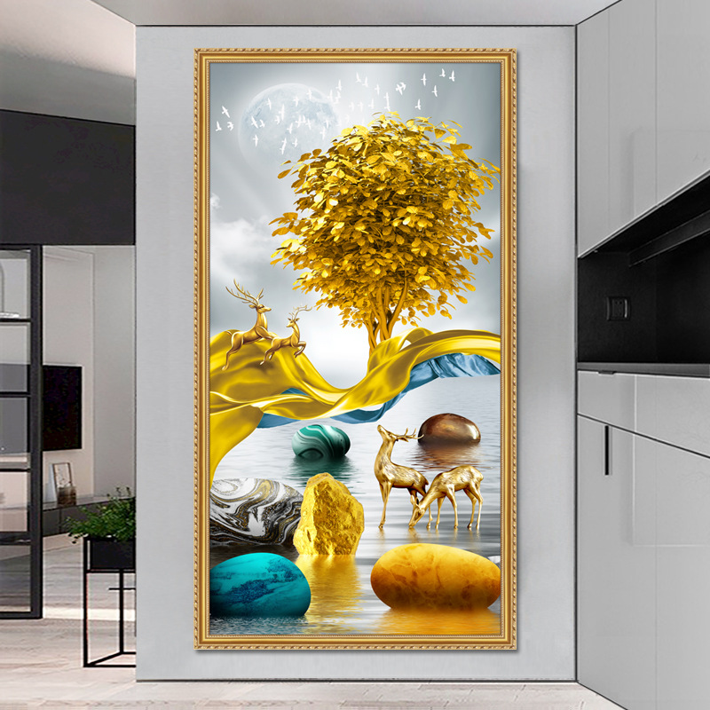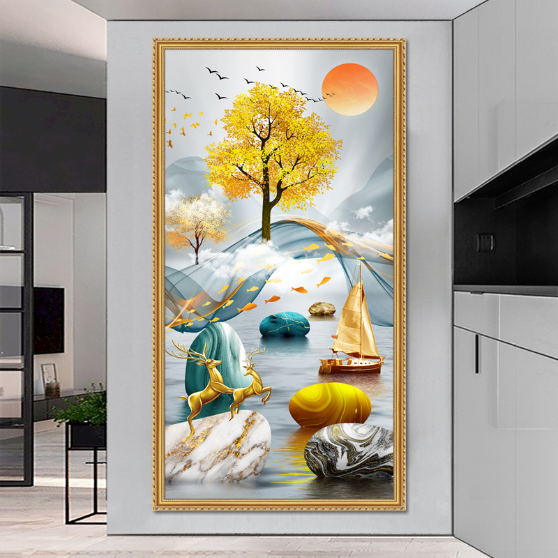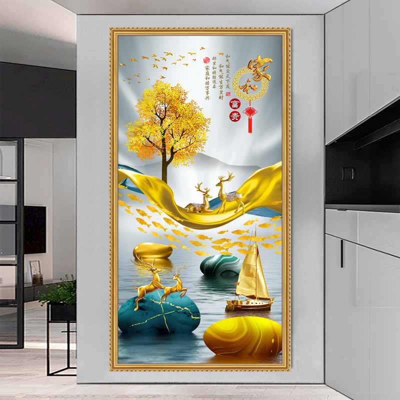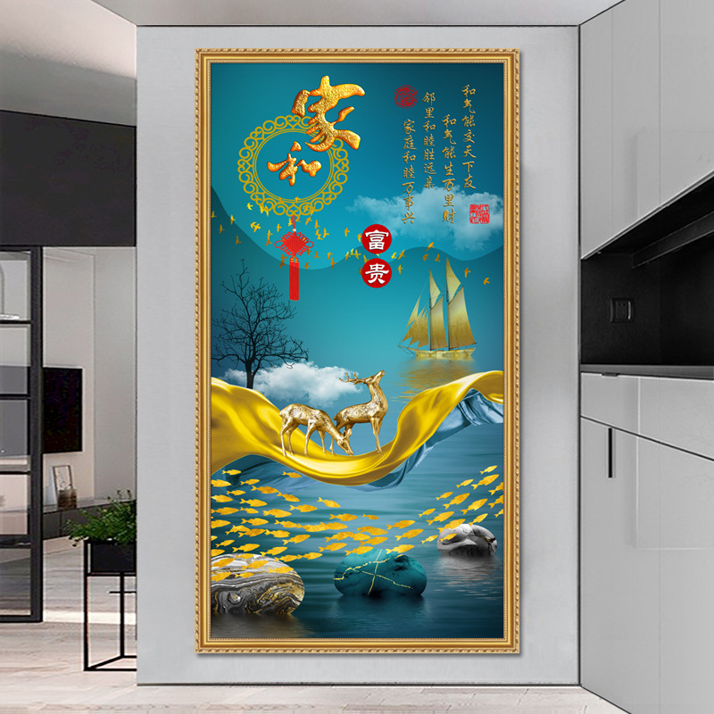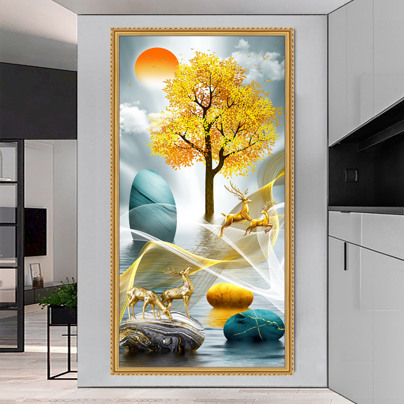 Главная страница > Легкий экстравагантный ветер декоративная роспись современного минималистского коридора вертикальная фреска абстрактная атмосферная гостиная проход лося висит роспись