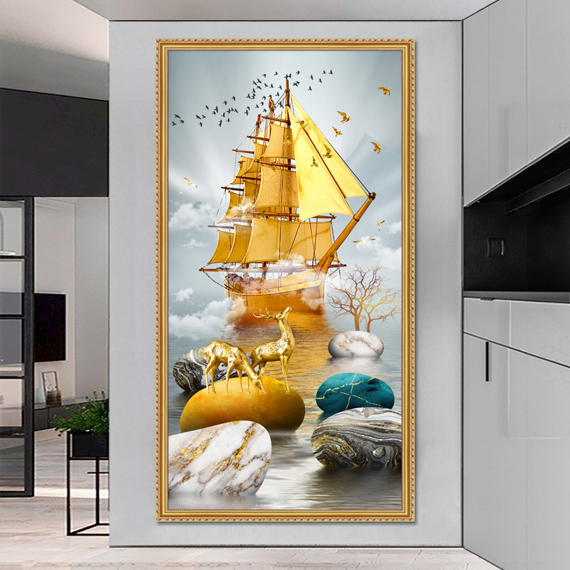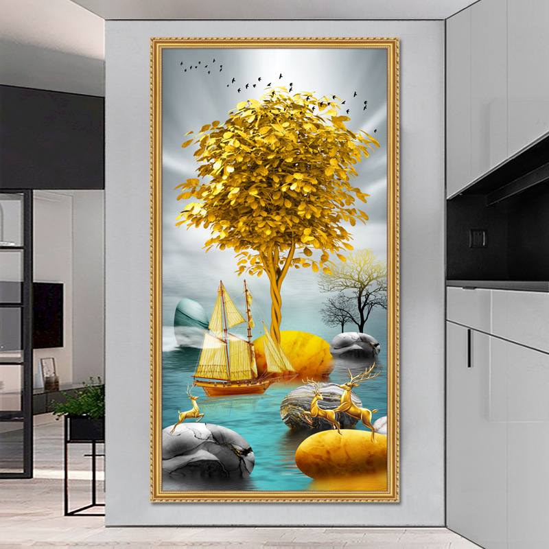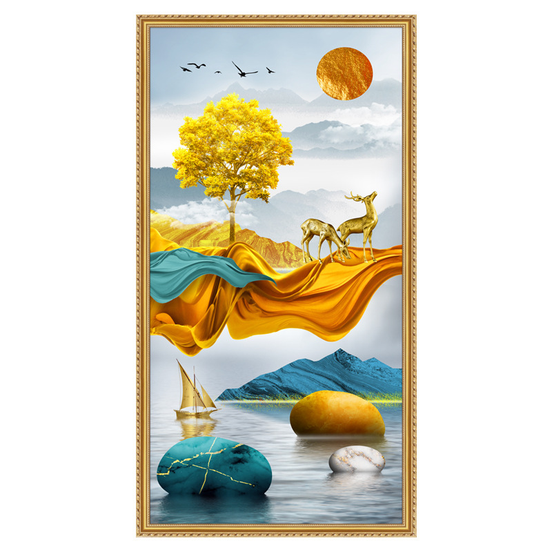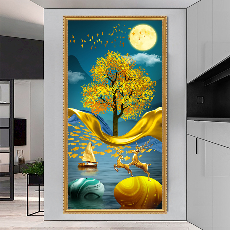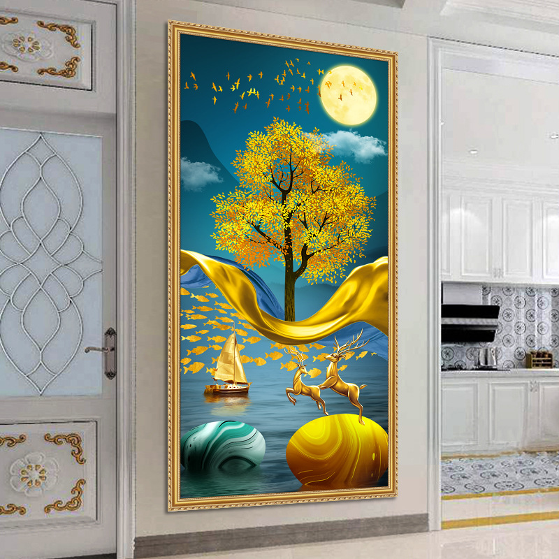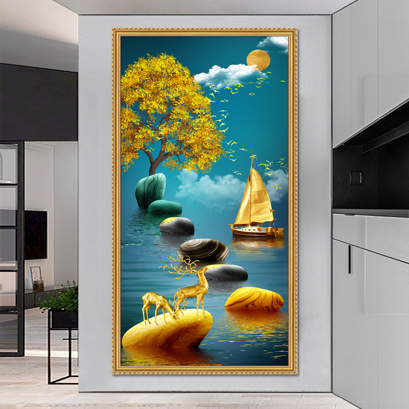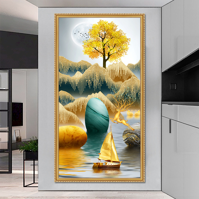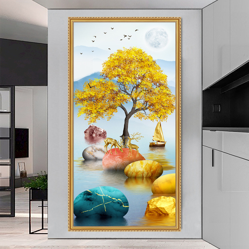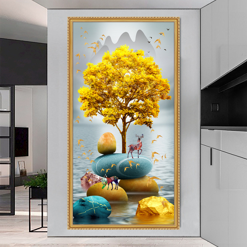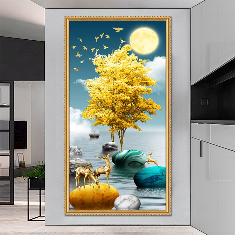 Главная страница > Легкий экстравагантный ветер декоративная роспись современного минималистского коридора вертикальная фреска абстрактная атмосферная гостиная проход лося висит роспись