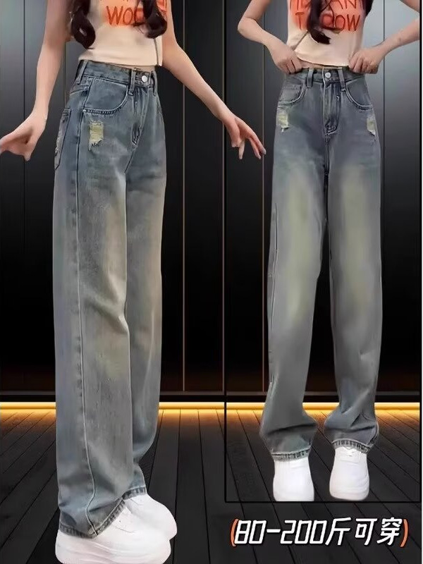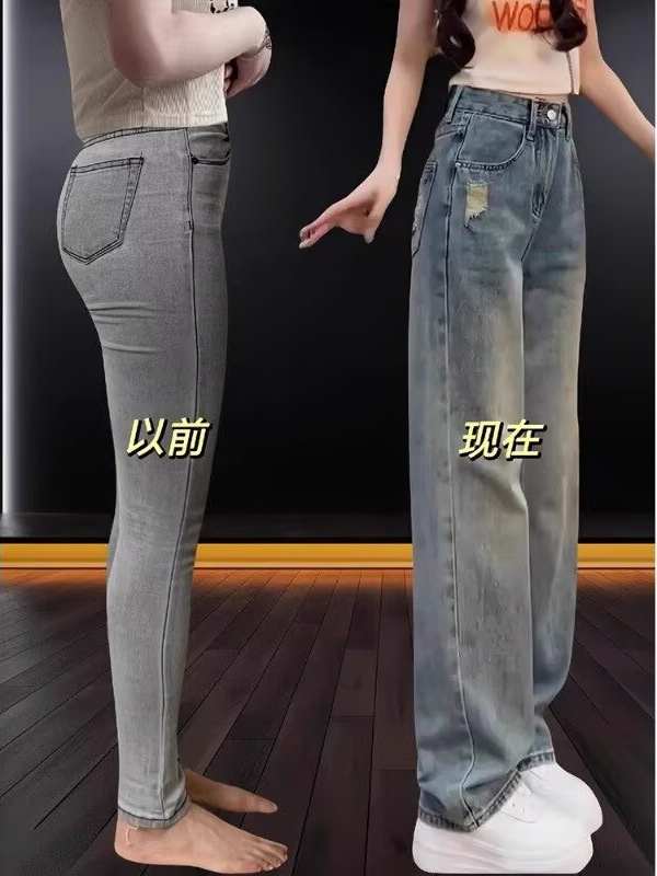 Главная страница > Тонкие прямые брюки с высокой талией 2024 новые джинсы грушевидное тело большой размер толстый мм тонкая узкая версия широкие ноги