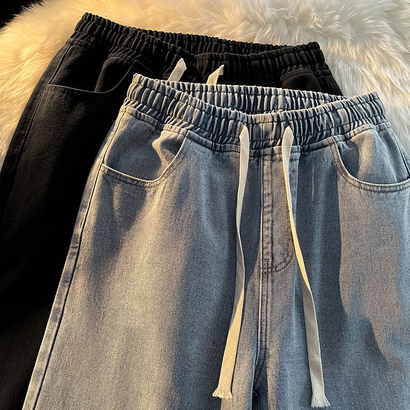 Главная страница > Джинсы с эластичной талией женские модные в прямой трубке широкие свободные летние тонкие 2023 Новые широкие весенние и осенние брюки с завязками