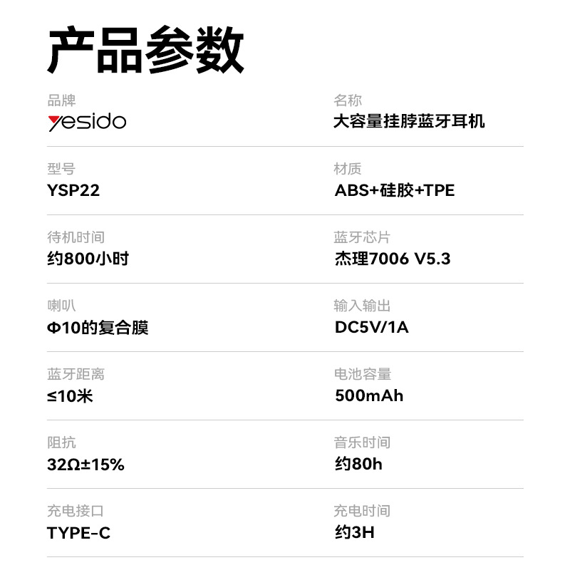 Беспроводные Bluetooth-наушники Yesido с цифровым дисплеем, шейным креплением, шумоподавлением, длительным временем работы и поддержкой работы за пределами сети, идеально подходящие для бега.