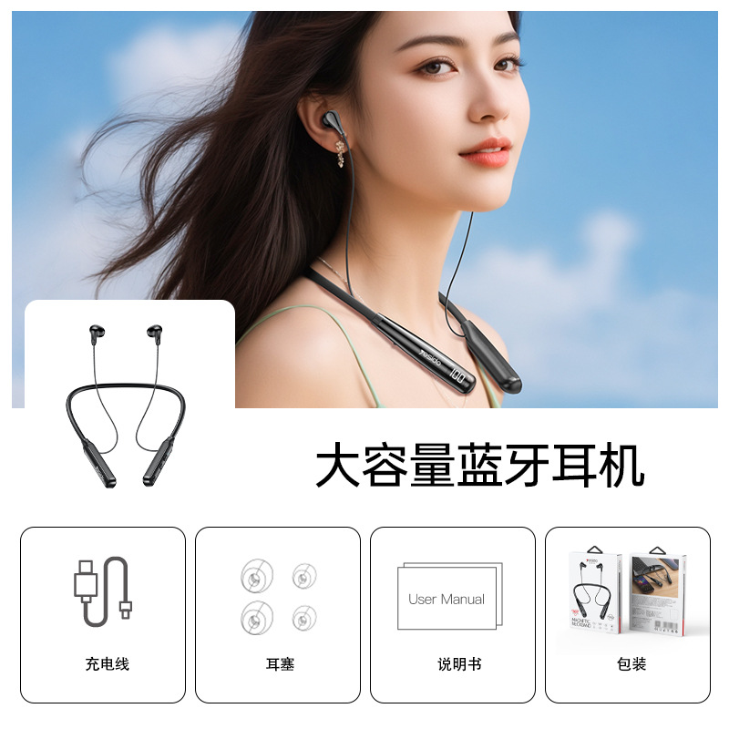 Главная страница > Беспроводные Bluetooth-наушники Yesido с цифровым дисплеем, шейным креплением, шумоподавлением, длительным временем работы и поддержкой работы за пределами сети, идеально подходящие для бега.