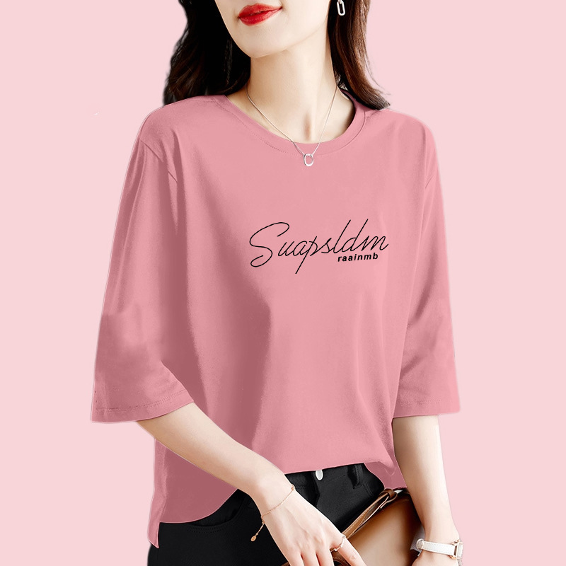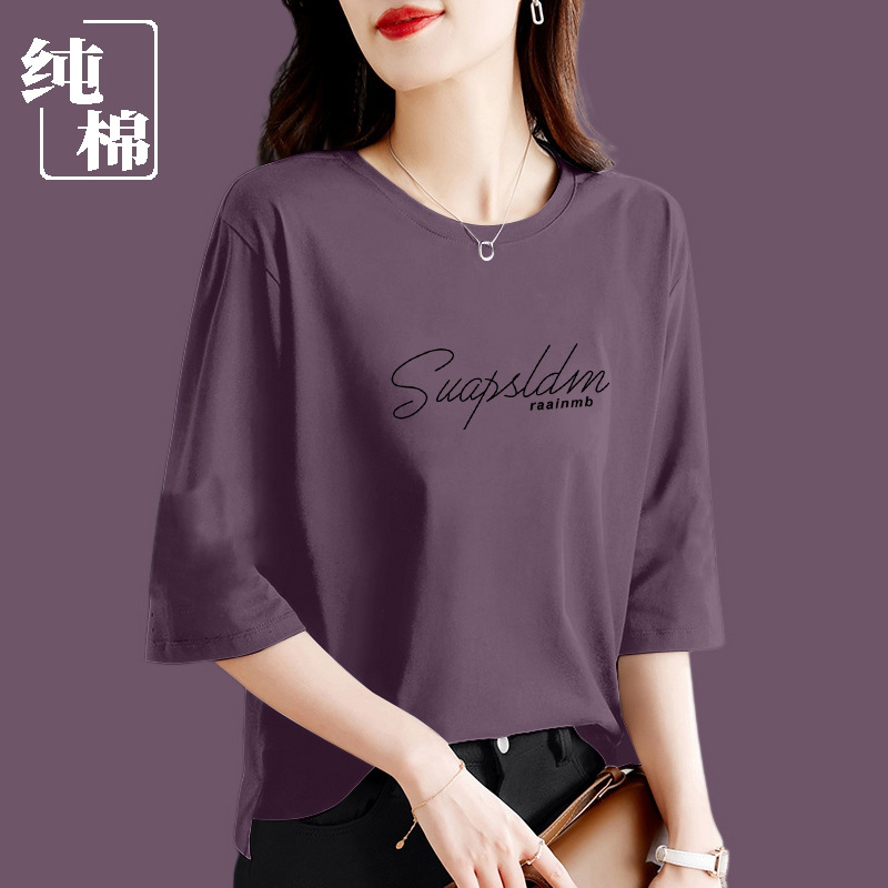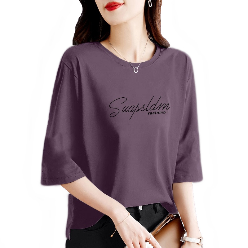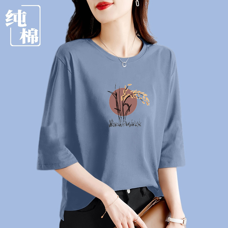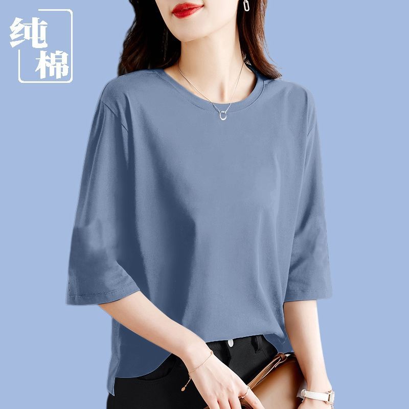 Главная страница > Женская футболка с рукавом три четверти, новый китайский стиль 2025 года, весенне-летние свободные женские топы с короткими рукавами из ледяного фарфора, закрывающие живот, с половиной рукавов