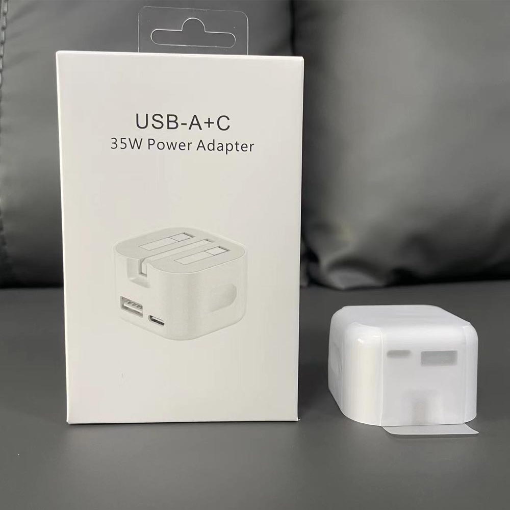 Двухпортовое зарядное устройство PD35W, британский стандарт, подходит для складных ножек, британский стандарт, зарядная головка Apple A+C, набор кабелей для передачи данных Apple
