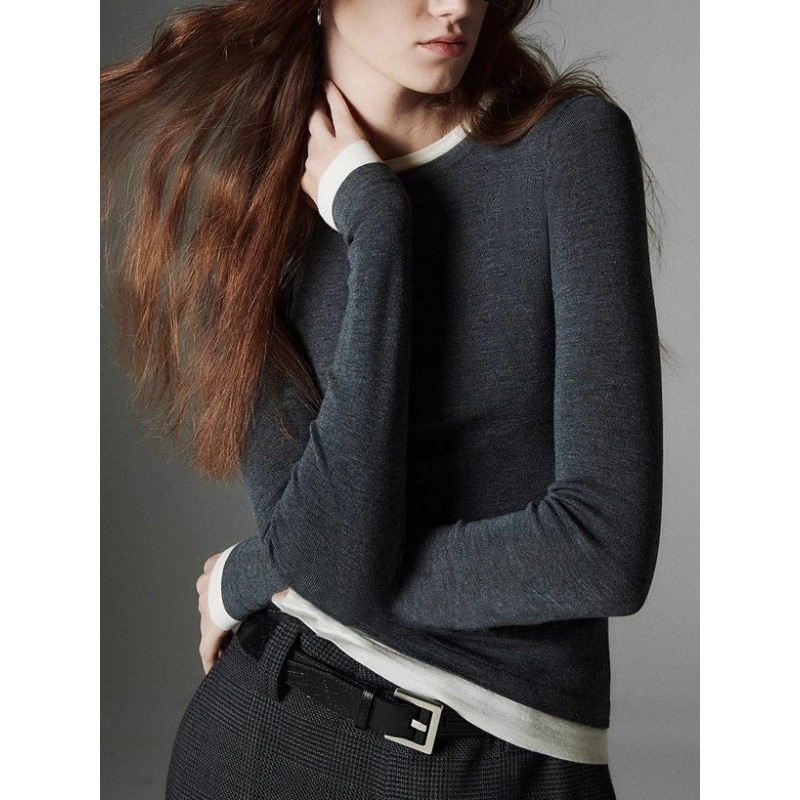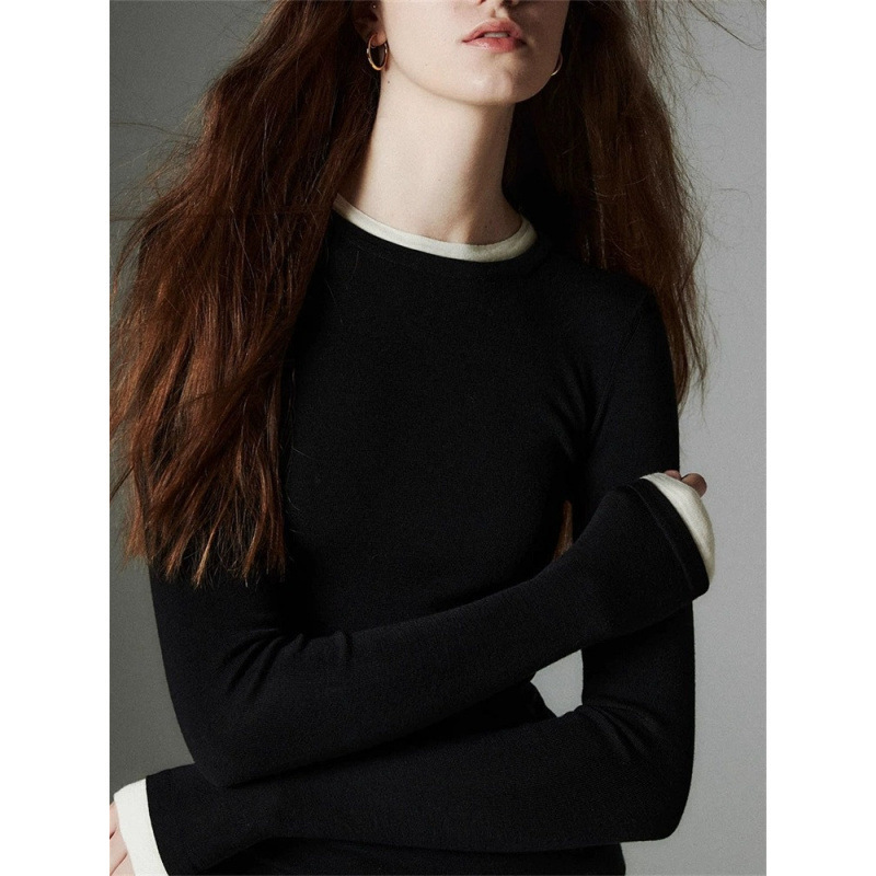 Главная страница > Внешняя торговля Трансграничный контратаный цвет поддельные две трикотажные нижние рубашки женские 2024 осень-зима цветовой дизайн теплый свитер