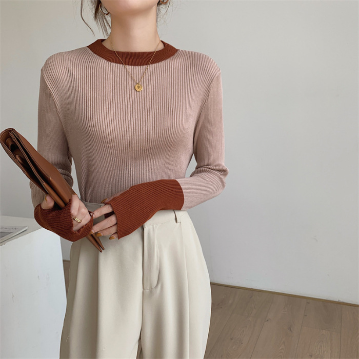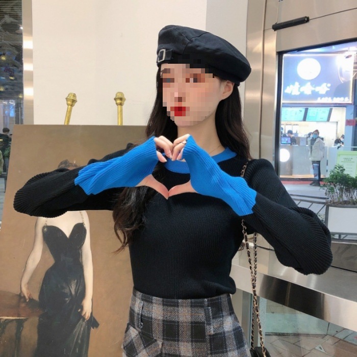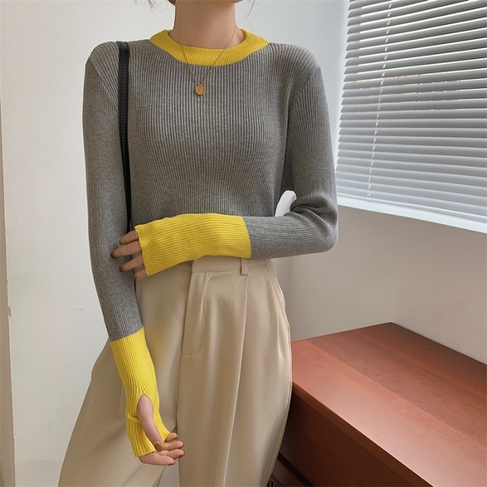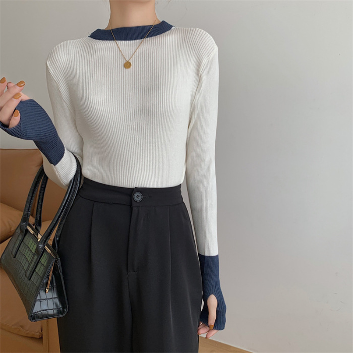 Рукава контрастного цвета свитер женский дизайн уникальный шикарный набор пальцев 2023 нижняя рубашка осень-зима толстый трикотажный топ