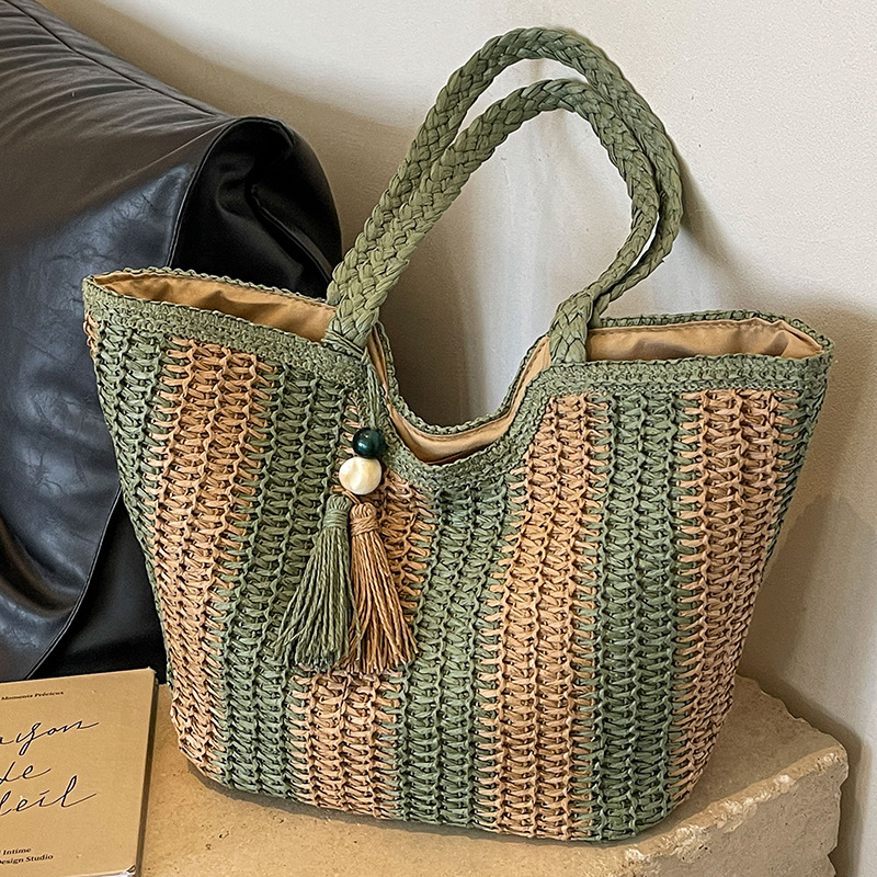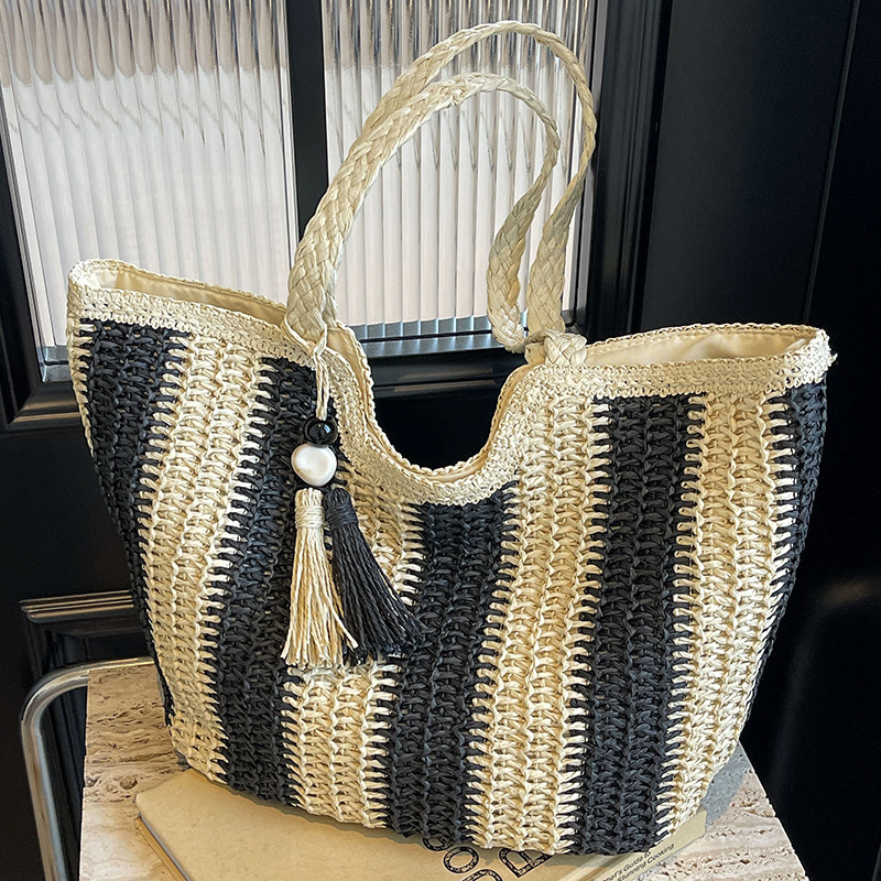 Главная страница > Новая соломенная сумка контрастного цвета, большая вместительная тканая сумка-тоут, повседневная дорожная сумка, женская сумка