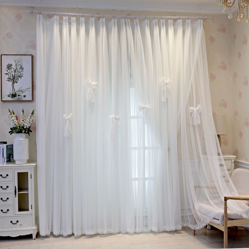 Новые модные плотные шторы кремового цвета для спальни, комнаты для девочек, тканевые и прозрачные двухслойные шторы для гостиной и балкона с эркером.