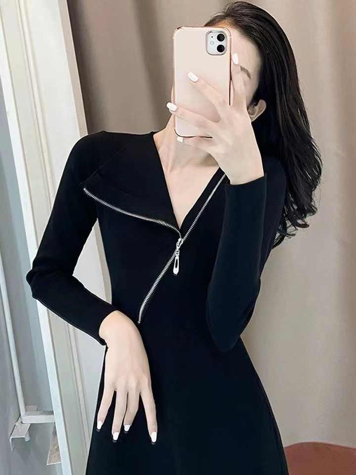Главная страница > 2025年秋冬新款长袖黑色连衣裙收腰显瘦气质赫本风打底小黑裙子女