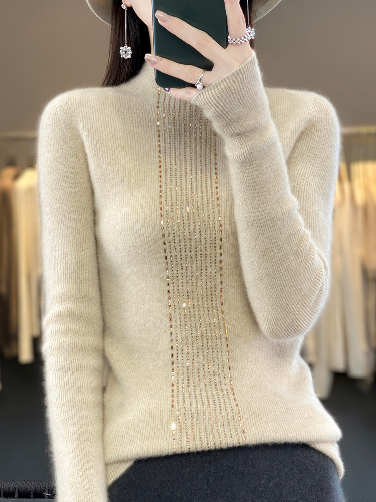 Главная страница > Элегантная облегающая осенне-зимняя новая вязаная Базовая рубашка из чистой шерсти, Женский Топ с длинным рукавом, свободная Универсальная